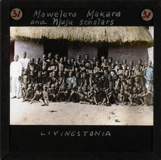 Keywords: "Mawelera, Makara and Njuju Scholars, Livingstonia" Malawi, ca.1895 (imp-cswc-GB-237-CSWC47-LS3-1-031).jpg en <br> Mawelera Makara and Njuju Scholars Livingstonia Malawi ca 1895 Photograph of a group of African boys possibly of the Ngoni tribe The boys are grouped in front of a clay building with a thatched roof possibly a school house ; The Ngoni people are an ethnic group living in Malawi Mozambique Tanzania and Zambia The Ngoni trace their origins to the Zulu people of kwaZulu-Natal in South Africa Photographer Unknown Filename imp-cswc-GB-237-CSWC47-LS3-1-031 tif Coverage date circa 1895 Part of collection International Mission Photography Archive ca 1860-ca 1960 Type images Part of subcollection Photographs from the Centre for the Study of World Christianity University of Edinburgh U K ca 1900-ca 1940s Repository name Centre for the Study of World Christianity Archival file impaunpub_Volume7/1417 url Repository address The University of Edinburgh School of Divinity New College Mound Place Edinburgh EH1 2LX United Kingdom Geographic subject country Malawi Format aacr2 1 lantern slide 8 x 8 cm Geographic subject continent Africa Rights Contact the repository for details Part of series Elmslie of the Wild Ngoni LS3/1 Repository email divinity-CSWC ed ac uk Subject lcsh Keyword Education; Children Date created circa 1895 Publisher of the digital version University of Southern California Libraries Subject aat genre group portraits Format aat lantern slides Legacy record ID impa-m68427 Access conditions http //www ed ac uk/schools-departments/divinity/research/centres/world-christianity/collections-resources File GB 237 CSWC47/LS3/1/31 1895 author http //digitallibrary usc edu/cdm/ref/collection/p15799coll123/id/64538 PD-old-70-1923 Magic lantern images Images from USC Digital Library uploaded by Fæ International Mission Photography Archive ca 1860-ca 1960 |