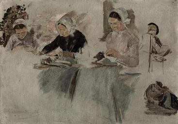 Keywords: Max Liebermann - Brabanter Spitzenklöpplerinnen (Studie).jpg Artwork Creator Max Liebermann 1881 oil canvas cardboard cm 24 4 34 3 object history Max Liebermann Berlin until at least 1929; - Galerie Thannhauser Berlin no 3783 ; - Dr Mrs Walter Buchler Braunschweig by whom acquired from the above in May 1935 and thence by descent exhibition history Berlin Königliche Akademie der Künste Max Liebermann 70 Geburtstag July - August 1917 no 57 <br/>Zürich Kunsthaus Max Liebermann June - July 1923 no 18 <br/> possibly Hamburg Kunstverein Max Liebermann November - December 1926 no 8 <br/>Vienna Künstlerhaus 50 Jahresausstellung der Genossenschaft der Bildenden Künstler Wiens mit Ausstellung Max Liebermann March - May 1929 no 108 <br/>Hanover Landesgalerie Max Liebermann 1847-1935 1954 n n ; this exhibition later travelled to Bremen Kunsthalle no 22 credit line 'MLiebermann 81' ~ lower left signature and date accession number christies online 5334012 PD-old-auto-1923 1935 1880s paintings by Max Liebermann |