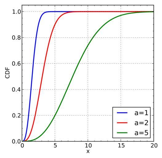 | Keywords: Maxwell-Boltzmann distribution cdf.svg en Cumulative distribution function of Maxwell-Boltzmann distribution 2012-10-11 14 46 25 own Krishnavedala validSVG Python source code <syntaxhighlight lang python> from scipy special import erf from numpy import from matplotlib pyplot import cdf lambda a x erf x/ a sqrt 2 - x exp -x x/ 2 a a sqrt 2/pi /a fig figure figsize 5 5 ax fig add_subplot 111 ax grid True ax minorticks_on x linspace 001 20 150 ax plot x cdf 1 x label r a 1 linewidth 2 ax plot x cdf 2 x 'r' label r a 2 linewidth 2 ax plot x cdf 5 x 'g' label r a 5 linewidth 2 ax set_ylim 0 1 05 ax set_xlim 0 20 ax set_xlabel r'x' ax set_ylabel r'CDF' ax legend loc 4 fig savefig Maxwell-Boltzmann_distribution_cdf svg bbox_inches tight pad_inches 15 </syntaxhighlight> boc cc-zero Uploaded with UploadWizard Created with Matplotlib Maxwell “Boltzmann distributions |