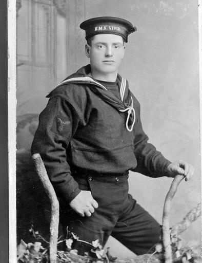 Keywords: young man portrait sailor uniform 1918 wwi a.h. poole ahpoole arthur henri poole arthurhenripoole poole collection poolecollection glass negative glassnegative saturday 11th may 20th century 20thcentury cullen ballyduff kilmeaden ireland munster h.m.s. vivid hmsvivid waterford national library of ireland nationallibraryofireland blackandwhite people monochrome black and white Copy of a photograph of a sailor - made for a Mrs Cullen, Ballyduff, Kilmeaden, Co. Waterford. Date: Saturday, 11 May 1918 (copy made) NLI Ref.: P_WP_2769 Copy of a photograph of a sailor - made for a Mrs Cullen, Ballyduff, Kilmeaden, Co. Waterford. Date: Saturday, 11 May 1918 (copy made) NLI Ref.: P_WP_2769