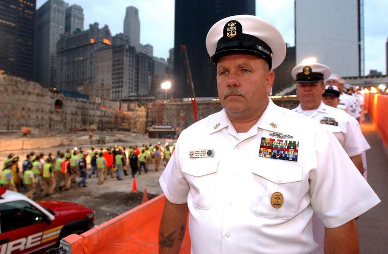 | Keywords: May 28 2002 Ground Zero Cleanup 03.jpg Master Chief Damage Controlman D Westlye Command Master Chief for Commander Naval Region Northeast Detachment New York leads a group of U S Navy Sailors into Ground Zero to render honors to the efforts of New York City Police Firefighters and recovery workers at the site Sailors were visiting New York during the 15th annual Fleet Week celebration The event marked the final removal of the last remaining World Trade Center structure Column Number 1001B of Two World Trade Center The 30-foot column remained standing following the collapse of the twin towers when terrorists flew two commercial airliners into both skyscrapers on September 11 2001 The resulting collapse created a mountain of 1 8 million tons of steel and concrete More than 3000 people perished in the attack http //www news navy mil/view_single asp id 1653 2002-05-28 Photographer ™s Mate 2nd Class Bob Houlihan United States Navy PD-USGov-Military-Navy Personality rights Ground Zero World Trade Center in 2002 Photographs taken on 2002-05-28 New York City Fleet Week New York 2002 Male soldiers Men at work Men looking left People of the United States in 2002 People with ribbon bars Sailors from the United States Navy Military people on duty Peaked caps of the United States Navy Military people in 2002 White military uniforms White clothing male Military marches Moustaches Taken with Nikon D1H |