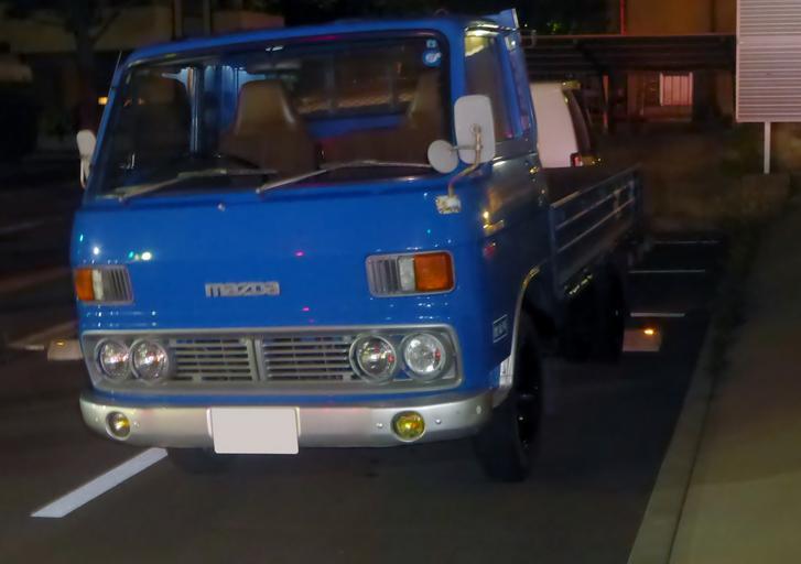 Keywords: Mazda TITAN I at night front.JPG ja 代マツ ・タイタンを 間にフロントから撮影 2014-08-27 20 24 22 own Tokumeigakarinoaoshima cc-zero Uploaded with UploadWizard Mazda Titan first generation Blue trucks
