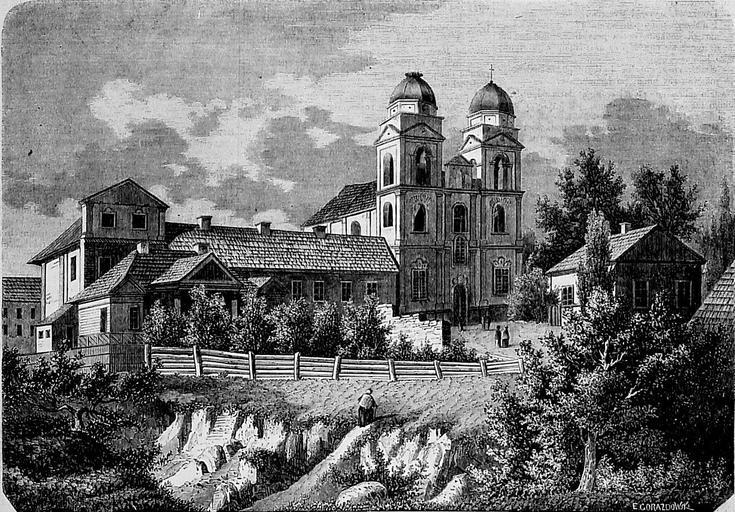 | Keywords: Mazyr, Zamkavaja. Мазыр, Замкавая (4.03.1865).jpg азы Mazyr вуліца Замкавая vulica Zamkavaja Ба окавы касьцёл і кляшта бэ на дынаў збудаваны з фундацыі палкоўніка Стэфана Лошкі Ад 1865 і да сёньня ца ква Сьвятога іхала А ханёла аскоўскага пат ыя хату en Mazyr Catholic Church XIX century Mozyrzu zbudowany z fundacji pułkownika Stefana Łoszki Od 1865 sobór prawosławny obecnie cerkiew katedralna św Archanioła Michała Tygodnik Ilustrowany Nr 284 4 03 1865 S 80-81 http //www bilp uw edu pl/ti/1865/foto/n81 htm Creator Edward Gorazdowski 1865 PD-old-100 Church of Saint Michael Archangel in Mazyr History of Mazyr Edward Gorazdowski |