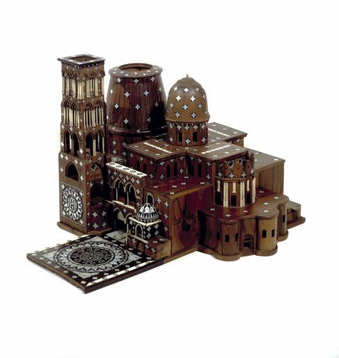 | Keywords: MCC-35010 Maquette van de kerk van het Heilig Graf te Jeruzalem (1).tif Artwork nl Anonymous Israël Anonymous Bethlehem nl Als aandenken aan hun tocht naar het Heilig Land nemen pelgrims souvenirs mee naar huis zoals modellen van de Heilig-Grafkerk en de Grafkapel Het witte natuurstenen exemplaar is mogelijk door een pelgrim meegenomen naar Amsterdam Daar is dit model aan het eind van de twintigste eeuw opgegraven Ook grotere en duurdere modellen zijn in trek Ze worden verfijnd uitgevoerd in olijfhout met zuiltjes van ivoor en ingelegd met parelmoer De daken en koepels kunnen er afgenomen worden zodat het minutieus nagebouwde interieur zichtbaar wordt Dit type model werd vanaf het begin van de zeventiende eeuw gemaakt door de franciscanen in Bethlehem en Jeruzalem Het kistje bevat relieken uit het Heilig Land zoals zand en steentjes Een tweetalige index vermeldt de plaats van herkomst Model van de Heilig-Grafkapel te Jeruzalem Bethlehem of Jeruzalem tweede helft 16e eeuw Museum Catharijneconvent Utrecht RMCC v314 Model van de Heilig-Grafkerk en kistje met relieken Bethlehem ca 1675 Museum Catharijneconvent Utrecht BMH v1575a-f Album Fleurs de terre sainte de Jérusalem F F Marroum Jeruzalem 1900-1920 Museum Catharijneconvent Utrecht RMCC v761 between 1650 1699 nl hout olijfhout cederhout parelmoer ivoor Size 22 5 39 0 cm nl Hoogte 22 5cm Breedte 39 0cm Diepte 34 5cm Institution Museum Catharijneconvent object history exhibition history credit line nl Foto Museum Catharijneconvent Utrecht foto Ruben de Heer accession number Object number 35010 Inventory number BMH v01575a place of creation https //www catharijneconvent nl/adlib/35010/ View this work on the website of Museum Catharijneconvent Museum Catharijneconvent Cc-zero <gallery> File MCC-35010_Maquette_van_de_kerk_van_het_Heilig_Graf_te_Jeruzalem_ 1 tif </gallery> |