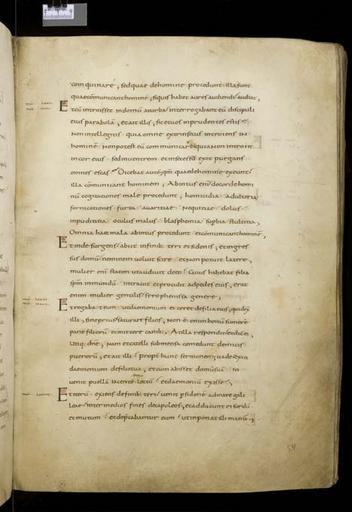 Keywords: MCC-61050 Evangeliarium (Lebuïnuscodex) (111).jpg Artwork nl Anonymous Noordoost-Frankrijk Anonymous Rijnland Anonymous Maasland nl De kern van de boekband van de Lebuïnuscodex wordt gevormd door twee eikenhouten platten De rug en het achterplat zijn overtrokken met zeemleer Het voorplat is rijkelijk versierd met verguld zilversmeedwerk reliëfs van walrustand en verscheidene stenen De compositie van de bekleding van het voorplat wordt bepaald door een verguld zilveren filigraankruis Aan de uiteinden van de kruisarmen bevinden zich vierpassen met overhoeks vierkant eveneens met filigraan gedecoreerd Hiervan zijn er slechts twee bewaard gebleven en wel die aan de verticale kruisarmen Zij bevatten tevens nog de oorspronkelijke versiering bestaande uit een filigraanmedaillon met een pseudo-camee van respectievelijk een mannen- en een vrouwenhoofd in profiel Het snijpunt van het kruis wordt ingenomen door een ver vooruitstekend Bacchuskopje in chalcedoon te herkennen aan de kleine druiventrosjes in zijn haartooi Het kopje is gevat in een filigraanmedaillon welke op zijn beurt weer is geplaatst op een vierpas van filigraanwerk Op elk van de kruisarmen bevindt zich een ovale steen 'en cabochon' op een medaillon met filigraan Het filigraanwerk van kruis en sierstukken is in de vorm van visblazen In de ruimten tussen de kruisarmen zijn rechthoekige reliëfs van walrustand aangebracht met de vier evangelisten en hun symbool De reliëfs hebben de volgende afmetingen H 10 0 x B 5 5 cm Van links boven naar rechts onder betreft het Mattheus met de engel Johannes met de adelaar Marcus met de gevleugelde leeuw en Lucas met de gevleugelde os De figuren zijn paarsgewijs als elkaars spiegelbeeld ten opzichte van de middenas geplaatst Mattheus en Johannes zitten vrijwel geheel frontaal terwijl Marcus en Lucas meer in profiel zijn afgebeeld Qua opbouw verschillen de vier reliëfs nauwelijks van elkaar Binnen een rand van vierlobbige blaadjes verheffen zich twee zuilen met een basis een kapiteel en een dekplaat Hierop rust een rondboog geflankeerd door twee torens en afgedekt met een fronton dat boven Mattheus en Johannes boogvormig en boven Marcus en Lucas driehoekig is Onder deze overhuiving zitten de evangelisten gekleed in een lang gewaad en mantel met gekruiste benen aan een lessenaar hun blote voeten rustend op een bankje Allen zijn baardeloos en voorzien van een nimbus Voorts houden ze een pen in hun rechterhand terwijl hun linker op een boek ligt of gebarend is opgeheven Boven elk van de evangelisten verschijnt in de opening van het fronton zijn symbool met een spreukband Dit rijkelijk gedecoreerde middenveld wordt omlijst door sierbanden van verguld koper De opbouw van de sierlijsten is steeds dezelfde een opstaande smalle band die op regelmatige afstanden is voorzien van holten met aan weerszijden een brede strook voorzien van een gestanst motief Aan de lange zijden van de boekband bestaat het motief uit palmetten aan de korte zijden uit rozetten Van deze laatstgenoemde stroken ontbreekt steeds de buitenste rand Bij alle stroken met palmettenmotief wijzen de palmetten naar links met uitzondering van de buitenste strook rechtsboven die het motief in tegengestelde richting toont Verguld zilveren rozetten op de hoeken van het voorplat omgeven door een smalle rand van filigraanwerk met cirkelmotief en bekroond met een 'en cabochon' gezette steen completeren het geheel Van de rozet links onder ontbreekt de steen en is slechts de buitenste rand over Aan de voorzijde van de boekband bevinden zich nog de rudimenten van twee sluitingen between u'825' u'1000' u'1150' u'850' u'1199' u'1199' nl perkament eikenhout zilver goud koper walrustand chalcedoon glas leer Size 35 5 26 0 cm nl Hoogte 35 5cm Breedte 26 0cm Diepte 13 5cm Institution Museum Catharijneconvent object history exhibition history credit line nl Foto Museum Catharijneconvent Utrecht foto HetFotoAtelier Peter Rothengatter accession number Object number 61050 Inventory number ABM h1 place of creation https //www catharijneconvent nl/adlib/61050/ View this work on the website of Museum Catharijneconvent Museum Catharijneconvent Cc-zero <gallery> File MCC-61050_Evangeliarium_Lebuïnuscodex_ 11 jpg File MCC-61050_Evangeliarium_Lebuïnuscodex_ 172 jpg File MCC-61050_Evangeliarium_Lebuïnuscodex_ 212 jpg File MCC-61050_Evangeliarium_Lebuïnuscodex_ 61 jpg File MCC-61050_Evangeliarium_Lebuïnuscodex_ 12 jpg File MCC-61050_Evangeliarium_Lebuïnuscodex_ 213 jpg File MCC-61050_Evangeliarium_Lebuïnuscodex_ 56 jpg File MCC-61050_Evangeliarium_Lebuïnuscodex_ 232 jpg File MCC-61050_Evangeliarium_Lebuïnuscodex_ 93 jpg File MCC-61050_Evangeliarium_Lebuïnuscodex_ 99 jpg File MCC-61050_Evangeliarium_Lebuïnuscodex_ 184 jpg File MCC-61050_Evangeliarium_Lebuïnuscodex_ 64 jpg File MCC-61050_Evangeliarium_Lebuïnuscodex_ 299 jpg File MCC-61050_Evangeliarium_Lebuïnuscodex_ 86 jpg File MCC-61050_Evangeliarium_Lebuïnuscodex_ 260 jpg File MCC-61050_Evangeliarium_Lebuïnuscodex_ 159 jpg File MCC-61050_Evangeliarium_Lebuïnuscodex_ 247 jpg File MCC-61050_Evangeliarium_Lebuïnuscodex_ 180 jpg File MCC-61050_Evangeliarium_Lebuïnuscodex_ 121 jpg File MCC-61050_Evangeliarium_Lebuïnuscodex_ 315 jpg File MCC-61050_Evangeliarium_Lebuïnuscodex_ 284 jpg File MCC-61050_Evangeliarium_Lebuïnuscodex_ 33 jpg File MCC-61050_Evangeliarium_Lebuïnuscodex_ 44 jpg File MCC-61050_Evangeliarium_Lebuïnuscodex_ 258 jpg File MCC-61050_Evangeliarium_Lebuïnuscodex_ 237 jpg File MCC-61050_Evangeliarium_Lebuïnuscodex_ 20 jpg File MCC-61050_Evangeliarium_Lebuïnuscodex_ 220 jpg File MCC-61050_Evangeliarium_Lebuïnuscodex_ 279 jpg File MCC-61050_Evangeliarium_Lebuïnuscodex_ 183 jpg File MCC-61050_Evangeliarium_Lebuïnuscodex_ 60 jpg File MCC-61050_Evangeliarium_Lebuïnuscodex_ 166 jpg File MCC-61050_Evangeliarium_Lebuïnuscodex_ 97 jpg File MCC-61050_Evangeliarium_Lebuïnuscodex_ 71 jpg File MCC-61050_Evangeliarium_Lebuïnuscodex_ 132 jpg File MCC-61050_Evangeliarium_Lebuïnus