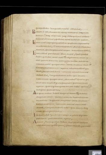 Keywords: MCC-61050 Evangeliarium (Lebuïnuscodex) (193).jpg Artwork nl Anonymous Noordoost-Frankrijk Anonymous Rijnland Anonymous Maasland nl De kern van de boekband van de Lebuïnuscodex wordt gevormd door twee eikenhouten platten De rug en het achterplat zijn overtrokken met zeemleer Het voorplat is rijkelijk versierd met verguld zilversmeedwerk reliëfs van walrustand en verscheidene stenen De compositie van de bekleding van het voorplat wordt bepaald door een verguld zilveren filigraankruis Aan de uiteinden van de kruisarmen bevinden zich vierpassen met overhoeks vierkant eveneens met filigraan gedecoreerd Hiervan zijn er slechts twee bewaard gebleven en wel die aan de verticale kruisarmen Zij bevatten tevens nog de oorspronkelijke versiering bestaande uit een filigraanmedaillon met een pseudo-camee van respectievelijk een mannen- en een vrouwenhoofd in profiel Het snijpunt van het kruis wordt ingenomen door een ver vooruitstekend Bacchuskopje in chalcedoon te herkennen aan de kleine druiventrosjes in zijn haartooi Het kopje is gevat in een filigraanmedaillon welke op zijn beurt weer is geplaatst op een vierpas van filigraanwerk Op elk van de kruisarmen bevindt zich een ovale steen 'en cabochon' op een medaillon met filigraan Het filigraanwerk van kruis en sierstukken is in de vorm van visblazen In de ruimten tussen de kruisarmen zijn rechthoekige reliëfs van walrustand aangebracht met de vier evangelisten en hun symbool De reliëfs hebben de volgende afmetingen H 10 0 x B 5 5 cm Van links boven naar rechts onder betreft het Mattheus met de engel Johannes met de adelaar Marcus met de gevleugelde leeuw en Lucas met de gevleugelde os De figuren zijn paarsgewijs als elkaars spiegelbeeld ten opzichte van de middenas geplaatst Mattheus en Johannes zitten vrijwel geheel frontaal terwijl Marcus en Lucas meer in profiel zijn afgebeeld Qua opbouw verschillen de vier reliëfs nauwelijks van elkaar Binnen een rand van vierlobbige blaadjes verheffen zich twee zuilen met een basis een kapiteel en een dekplaat Hierop rust een rondboog geflankeerd door twee torens en afgedekt met een fronton dat boven Mattheus en Johannes boogvormig en boven Marcus en Lucas driehoekig is Onder deze overhuiving zitten de evangelisten gekleed in een lang gewaad en mantel met gekruiste benen aan een lessenaar hun blote voeten rustend op een bankje Allen zijn baardeloos en voorzien van een nimbus Voorts houden ze een pen in hun rechterhand terwijl hun linker op een boek ligt of gebarend is opgeheven Boven elk van de evangelisten verschijnt in de opening van het fronton zijn symbool met een spreukband Dit rijkelijk gedecoreerde middenveld wordt omlijst door sierbanden van verguld koper De opbouw van de sierlijsten is steeds dezelfde een opstaande smalle band die op regelmatige afstanden is voorzien van holten met aan weerszijden een brede strook voorzien van een gestanst motief Aan de lange zijden van de boekband bestaat het motief uit palmetten aan de korte zijden uit rozetten Van deze laatstgenoemde stroken ontbreekt steeds de buitenste rand Bij alle stroken met palmettenmotief wijzen de palmetten naar links met uitzondering van de buitenste strook rechtsboven die het motief in tegengestelde richting toont Verguld zilveren rozetten op de hoeken van het voorplat omgeven door een smalle rand van filigraanwerk met cirkelmotief en bekroond met een 'en cabochon' gezette steen completeren het geheel Van de rozet links onder ontbreekt de steen en is slechts de buitenste rand over Aan de voorzijde van de boekband bevinden zich nog de rudimenten van twee sluitingen between u'825' u'1000' u'1150' u'850' u'1199' u'1199' nl perkament eikenhout zilver goud koper walrustand chalcedoon glas leer Size 35 5 26 0 cm nl Hoogte 35 5cm Breedte 26 0cm Diepte 13 5cm Institution Museum Catharijneconvent object history exhibition history credit line nl Foto Museum Catharijneconvent Utrecht foto HetFotoAtelier Peter Rothengatter accession number Object number 61050 Inventory number ABM h1 place of creation https //www catharijneconvent nl/adlib/61050/ View this work on the website of Museum Catharijneconvent Museum Catharijneconvent Cc-zero <gallery> File MCC-61050_Evangeliarium_Lebuïnuscodex_ 11 jpg File MCC-61050_Evangeliarium_Lebuïnuscodex_ 172 jpg File MCC-61050_Evangeliarium_Lebuïnuscodex_ 212 jpg File MCC-61050_Evangeliarium_Lebuïnuscodex_ 61 jpg File MCC-61050_Evangeliarium_Lebuïnuscodex_ 12 jpg File MCC-61050_Evangeliarium_Lebuïnuscodex_ 213 jpg File MCC-61050_Evangeliarium_Lebuïnuscodex_ 56 jpg File MCC-61050_Evangeliarium_Lebuïnuscodex_ 232 jpg File MCC-61050_Evangeliarium_Lebuïnuscodex_ 93 jpg File MCC-61050_Evangeliarium_Lebuïnuscodex_ 99 jpg File MCC-61050_Evangeliarium_Lebuïnuscodex_ 184 jpg File MCC-61050_Evangeliarium_Lebuïnuscodex_ 64 jpg File MCC-61050_Evangeliarium_Lebuïnuscodex_ 299 jpg File MCC-61050_Evangeliarium_Lebuïnuscodex_ 86 jpg File MCC-61050_Evangeliarium_Lebuïnuscodex_ 260 jpg File MCC-61050_Evangeliarium_Lebuïnuscodex_ 159 jpg File MCC-61050_Evangeliarium_Lebuïnuscodex_ 247 jpg File MCC-61050_Evangeliarium_Lebuïnuscodex_ 180 jpg File MCC-61050_Evangeliarium_Lebuïnuscodex_ 121 jpg File MCC-61050_Evangeliarium_Lebuïnuscodex_ 315 jpg File MCC-61050_Evangeliarium_Lebuïnuscodex_ 284 jpg File MCC-61050_Evangeliarium_Lebuïnuscodex_ 33 jpg File MCC-61050_Evangeliarium_Lebuïnuscodex_ 44 jpg File MCC-61050_Evangeliarium_Lebuïnuscodex_ 258 jpg File MCC-61050_Evangeliarium_Lebuïnuscodex_ 237 jpg File MCC-61050_Evangeliarium_Lebuïnuscodex_ 20 jpg File MCC-61050_Evangeliarium_Lebuïnuscodex_ 220 jpg File MCC-61050_Evangeliarium_Lebuïnuscodex_ 279 jpg File MCC-61050_Evangeliarium_Lebuïnuscodex_ 183 jpg File MCC-61050_Evangeliarium_Lebuïnuscodex_ 60 jpg File MCC-61050_Evangeliarium_Lebuïnuscodex_ 166 jpg File MCC-61050_Evangeliarium_Lebuïnuscodex_ 97 jpg File MCC-61050_Evangeliarium_Lebuïnuscodex_ 71 jpg File MCC-61050_Evangeliarium_Lebuïnuscodex_ 132 jpg File MCC-61050_Evangeliarium_Lebuïnus