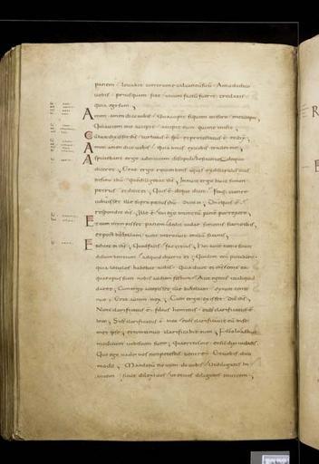 Keywords: MCC-61050 Evangeliarium (Lebuïnuscodex) (264).jpg Artwork nl Anonymous Noordoost-Frankrijk Anonymous Rijnland Anonymous Maasland nl De kern van de boekband van de Lebuïnuscodex wordt gevormd door twee eikenhouten platten De rug en het achterplat zijn overtrokken met zeemleer Het voorplat is rijkelijk versierd met verguld zilversmeedwerk reliëfs van walrustand en verscheidene stenen De compositie van de bekleding van het voorplat wordt bepaald door een verguld zilveren filigraankruis Aan de uiteinden van de kruisarmen bevinden zich vierpassen met overhoeks vierkant eveneens met filigraan gedecoreerd Hiervan zijn er slechts twee bewaard gebleven en wel die aan de verticale kruisarmen Zij bevatten tevens nog de oorspronkelijke versiering bestaande uit een filigraanmedaillon met een pseudo-camee van respectievelijk een mannen- en een vrouwenhoofd in profiel Het snijpunt van het kruis wordt ingenomen door een ver vooruitstekend Bacchuskopje in chalcedoon te herkennen aan de kleine druiventrosjes in zijn haartooi Het kopje is gevat in een filigraanmedaillon welke op zijn beurt weer is geplaatst op een vierpas van filigraanwerk Op elk van de kruisarmen bevindt zich een ovale steen 'en cabochon' op een medaillon met filigraan Het filigraanwerk van kruis en sierstukken is in de vorm van visblazen In de ruimten tussen de kruisarmen zijn rechthoekige reliëfs van walrustand aangebracht met de vier evangelisten en hun symbool De reliëfs hebben de volgende afmetingen H 10 0 x B 5 5 cm Van links boven naar rechts onder betreft het Mattheus met de engel Johannes met de adelaar Marcus met de gevleugelde leeuw en Lucas met de gevleugelde os De figuren zijn paarsgewijs als elkaars spiegelbeeld ten opzichte van de middenas geplaatst Mattheus en Johannes zitten vrijwel geheel frontaal terwijl Marcus en Lucas meer in profiel zijn afgebeeld Qua opbouw verschillen de vier reliëfs nauwelijks van elkaar Binnen een rand van vierlobbige blaadjes verheffen zich twee zuilen met een basis een kapiteel en een dekplaat Hierop rust een rondboog geflankeerd door twee torens en afgedekt met een fronton dat boven Mattheus en Johannes boogvormig en boven Marcus en Lucas driehoekig is Onder deze overhuiving zitten de evangelisten gekleed in een lang gewaad en mantel met gekruiste benen aan een lessenaar hun blote voeten rustend op een bankje Allen zijn baardeloos en voorzien van een nimbus Voorts houden ze een pen in hun rechterhand terwijl hun linker op een boek ligt of gebarend is opgeheven Boven elk van de evangelisten verschijnt in de opening van het fronton zijn symbool met een spreukband Dit rijkelijk gedecoreerde middenveld wordt omlijst door sierbanden van verguld koper De opbouw van de sierlijsten is steeds dezelfde een opstaande smalle band die op regelmatige afstanden is voorzien van holten met aan weerszijden een brede strook voorzien van een gestanst motief Aan de lange zijden van de boekband bestaat het motief uit palmetten aan de korte zijden uit rozetten Van deze laatstgenoemde stroken ontbreekt steeds de buitenste rand Bij alle stroken met palmettenmotief wijzen de palmetten naar links met uitzondering van de buitenste strook rechtsboven die het motief in tegengestelde richting toont Verguld zilveren rozetten op de hoeken van het voorplat omgeven door een smalle rand van filigraanwerk met cirkelmotief en bekroond met een 'en cabochon' gezette steen completeren het geheel Van de rozet links onder ontbreekt de steen en is slechts de buitenste rand over Aan de voorzijde van de boekband bevinden zich nog de rudimenten van twee sluitingen between u'825' u'1000' u'1150' u'850' u'1199' u'1199' nl perkament eikenhout zilver goud koper walrustand chalcedoon glas leer Size 35 5 26 0 cm nl Hoogte 35 5cm Breedte 26 0cm Diepte 13 5cm Institution Museum Catharijneconvent object history exhibition history credit line nl Foto Museum Catharijneconvent Utrecht foto HetFotoAtelier Peter Rothengatter accession number Object number 61050 Inventory number ABM h1 place of creation https //www catharijneconvent nl/adlib/61050/ View this work on the website of Museum Catharijneconvent Museum Catharijneconvent Cc-zero <gallery> File MCC-61050_Evangeliarium_Lebuïnuscodex_ 11 jpg File MCC-61050_Evangeliarium_Lebuïnuscodex_ 172 jpg File MCC-61050_Evangeliarium_Lebuïnuscodex_ 212 jpg File MCC-61050_Evangeliarium_Lebuïnuscodex_ 61 jpg File MCC-61050_Evangeliarium_Lebuïnuscodex_ 12 jpg File MCC-61050_Evangeliarium_Lebuïnuscodex_ 213 jpg File MCC-61050_Evangeliarium_Lebuïnuscodex_ 56 jpg File MCC-61050_Evangeliarium_Lebuïnuscodex_ 232 jpg File MCC-61050_Evangeliarium_Lebuïnuscodex_ 93 jpg File MCC-61050_Evangeliarium_Lebuïnuscodex_ 99 jpg File MCC-61050_Evangeliarium_Lebuïnuscodex_ 184 jpg File MCC-61050_Evangeliarium_Lebuïnuscodex_ 64 jpg File MCC-61050_Evangeliarium_Lebuïnuscodex_ 299 jpg File MCC-61050_Evangeliarium_Lebuïnuscodex_ 86 jpg File MCC-61050_Evangeliarium_Lebuïnuscodex_ 260 jpg File MCC-61050_Evangeliarium_Lebuïnuscodex_ 159 jpg File MCC-61050_Evangeliarium_Lebuïnuscodex_ 247 jpg File MCC-61050_Evangeliarium_Lebuïnuscodex_ 180 jpg File MCC-61050_Evangeliarium_Lebuïnuscodex_ 121 jpg File MCC-61050_Evangeliarium_Lebuïnuscodex_ 315 jpg File MCC-61050_Evangeliarium_Lebuïnuscodex_ 284 jpg File MCC-61050_Evangeliarium_Lebuïnuscodex_ 33 jpg File MCC-61050_Evangeliarium_Lebuïnuscodex_ 44 jpg File MCC-61050_Evangeliarium_Lebuïnuscodex_ 258 jpg File MCC-61050_Evangeliarium_Lebuïnuscodex_ 237 jpg File MCC-61050_Evangeliarium_Lebuïnuscodex_ 20 jpg File MCC-61050_Evangeliarium_Lebuïnuscodex_ 220 jpg File MCC-61050_Evangeliarium_Lebuïnuscodex_ 279 jpg File MCC-61050_Evangeliarium_Lebuïnuscodex_ 183 jpg File MCC-61050_Evangeliarium_Lebuïnuscodex_ 60 jpg File MCC-61050_Evangeliarium_Lebuïnuscodex_ 166 jpg File MCC-61050_Evangeliarium_Lebuïnuscodex_ 97 jpg File MCC-61050_Evangeliarium_Lebuïnuscodex_ 71 jpg File MCC-61050_Evangeliarium_Lebuïnuscodex_ 132 jpg File MCC-61050_Evangeliarium_Lebuïnus