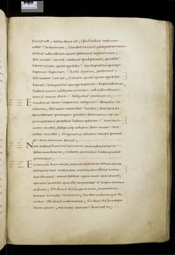 Keywords: MCC-61050 Evangeliarium (Lebuïnuscodex) (121).jpg Artwork nl Anonymous Noordoost-Frankrijk Anonymous Rijnland Anonymous Maasland nl De kern van de boekband van de Lebuïnuscodex wordt gevormd door twee eikenhouten platten De rug en het achterplat zijn overtrokken met zeemleer Het voorplat is rijkelijk versierd met verguld zilversmeedwerk reliëfs van walrustand en verscheidene stenen De compositie van de bekleding van het voorplat wordt bepaald door een verguld zilveren filigraankruis Aan de uiteinden van de kruisarmen bevinden zich vierpassen met overhoeks vierkant eveneens met filigraan gedecoreerd Hiervan zijn er slechts twee bewaard gebleven en wel die aan de verticale kruisarmen Zij bevatten tevens nog de oorspronkelijke versiering bestaande uit een filigraanmedaillon met een pseudo-camee van respectievelijk een mannen- en een vrouwenhoofd in profiel Het snijpunt van het kruis wordt ingenomen door een ver vooruitstekend Bacchuskopje in chalcedoon te herkennen aan de kleine druiventrosjes in zijn haartooi Het kopje is gevat in een filigraanmedaillon welke op zijn beurt weer is geplaatst op een vierpas van filigraanwerk Op elk van de kruisarmen bevindt zich een ovale steen 'en cabochon' op een medaillon met filigraan Het filigraanwerk van kruis en sierstukken is in de vorm van visblazen In de ruimten tussen de kruisarmen zijn rechthoekige reliëfs van walrustand aangebracht met de vier evangelisten en hun symbool De reliëfs hebben de volgende afmetingen H 10 0 x B 5 5 cm Van links boven naar rechts onder betreft het Mattheus met de engel Johannes met de adelaar Marcus met de gevleugelde leeuw en Lucas met de gevleugelde os De figuren zijn paarsgewijs als elkaars spiegelbeeld ten opzichte van de middenas geplaatst Mattheus en Johannes zitten vrijwel geheel frontaal terwijl Marcus en Lucas meer in profiel zijn afgebeeld Qua opbouw verschillen de vier reliëfs nauwelijks van elkaar Binnen een rand van vierlobbige blaadjes verheffen zich twee zuilen met een basis een kapiteel en een dekplaat Hierop rust een rondboog geflankeerd door twee torens en afgedekt met een fronton dat boven Mattheus en Johannes boogvormig en boven Marcus en Lucas driehoekig is Onder deze overhuiving zitten de evangelisten gekleed in een lang gewaad en mantel met gekruiste benen aan een lessenaar hun blote voeten rustend op een bankje Allen zijn baardeloos en voorzien van een nimbus Voorts houden ze een pen in hun rechterhand terwijl hun linker op een boek ligt of gebarend is opgeheven Boven elk van de evangelisten verschijnt in de opening van het fronton zijn symbool met een spreukband Dit rijkelijk gedecoreerde middenveld wordt omlijst door sierbanden van verguld koper De opbouw van de sierlijsten is steeds dezelfde een opstaande smalle band die op regelmatige afstanden is voorzien van holten met aan weerszijden een brede strook voorzien van een gestanst motief Aan de lange zijden van de boekband bestaat het motief uit palmetten aan de korte zijden uit rozetten Van deze laatstgenoemde stroken ontbreekt steeds de buitenste rand Bij alle stroken met palmettenmotief wijzen de palmetten naar links met uitzondering van de buitenste strook rechtsboven die het motief in tegengestelde richting toont Verguld zilveren rozetten op de hoeken van het voorplat omgeven door een smalle rand van filigraanwerk met cirkelmotief en bekroond met een 'en cabochon' gezette steen completeren het geheel Van de rozet links onder ontbreekt de steen en is slechts de buitenste rand over Aan de voorzijde van de boekband bevinden zich nog de rudimenten van twee sluitingen between u'825' u'1000' u'1150' u'850' u'1199' u'1199' nl perkament eikenhout zilver goud koper walrustand chalcedoon glas leer Size 35 5 26 0 cm nl Hoogte 35 5cm Breedte 26 0cm Diepte 13 5cm Institution Museum Catharijneconvent object history exhibition history credit line nl Foto Museum Catharijneconvent Utrecht foto HetFotoAtelier Peter Rothengatter accession number Object number 61050 Inventory number ABM h1 place of creation https //www catharijneconvent nl/adlib/61050/ View this work on the website of Museum Catharijneconvent Museum Catharijneconvent Cc-zero <gallery> File MCC-61050_Evangeliarium_Lebuïnuscodex_ 11 jpg File MCC-61050_Evangeliarium_Lebuïnuscodex_ 172 jpg File MCC-61050_Evangeliarium_Lebuïnuscodex_ 212 jpg File MCC-61050_Evangeliarium_Lebuïnuscodex_ 61 jpg File MCC-61050_Evangeliarium_Lebuïnuscodex_ 12 jpg File MCC-61050_Evangeliarium_Lebuïnuscodex_ 213 jpg File MCC-61050_Evangeliarium_Lebuïnuscodex_ 56 jpg File MCC-61050_Evangeliarium_Lebuïnuscodex_ 232 jpg File MCC-61050_Evangeliarium_Lebuïnuscodex_ 93 jpg File MCC-61050_Evangeliarium_Lebuïnuscodex_ 99 jpg File MCC-61050_Evangeliarium_Lebuïnuscodex_ 184 jpg File MCC-61050_Evangeliarium_Lebuïnuscodex_ 64 jpg File MCC-61050_Evangeliarium_Lebuïnuscodex_ 299 jpg File MCC-61050_Evangeliarium_Lebuïnuscodex_ 86 jpg File MCC-61050_Evangeliarium_Lebuïnuscodex_ 260 jpg File MCC-61050_Evangeliarium_Lebuïnuscodex_ 159 jpg File MCC-61050_Evangeliarium_Lebuïnuscodex_ 247 jpg File MCC-61050_Evangeliarium_Lebuïnuscodex_ 180 jpg File MCC-61050_Evangeliarium_Lebuïnuscodex_ 121 jpg File MCC-61050_Evangeliarium_Lebuïnuscodex_ 315 jpg File MCC-61050_Evangeliarium_Lebuïnuscodex_ 284 jpg File MCC-61050_Evangeliarium_Lebuïnuscodex_ 33 jpg File MCC-61050_Evangeliarium_Lebuïnuscodex_ 44 jpg File MCC-61050_Evangeliarium_Lebuïnuscodex_ 258 jpg File MCC-61050_Evangeliarium_Lebuïnuscodex_ 237 jpg File MCC-61050_Evangeliarium_Lebuïnuscodex_ 20 jpg File MCC-61050_Evangeliarium_Lebuïnuscodex_ 220 jpg File MCC-61050_Evangeliarium_Lebuïnuscodex_ 279 jpg File MCC-61050_Evangeliarium_Lebuïnuscodex_ 183 jpg File MCC-61050_Evangeliarium_Lebuïnuscodex_ 60 jpg File MCC-61050_Evangeliarium_Lebuïnuscodex_ 166 jpg File MCC-61050_Evangeliarium_Lebuïnuscodex_ 97 jpg File MCC-61050_Evangeliarium_Lebuïnuscodex_ 71 jpg File MCC-61050_Evangeliarium_Lebuïnuscodex_ 132 jpg File MCC-61050_Evangeliarium_Lebuïnus