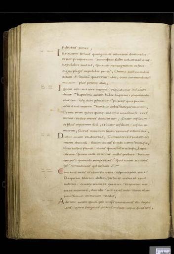 Keywords: MCC-61050 Evangeliarium (Lebuïnuscodex) (187).jpg Artwork nl Anonymous Noordoost-Frankrijk Anonymous Rijnland Anonymous Maasland nl De kern van de boekband van de Lebuïnuscodex wordt gevormd door twee eikenhouten platten De rug en het achterplat zijn overtrokken met zeemleer Het voorplat is rijkelijk versierd met verguld zilversmeedwerk reliëfs van walrustand en verscheidene stenen De compositie van de bekleding van het voorplat wordt bepaald door een verguld zilveren filigraankruis Aan de uiteinden van de kruisarmen bevinden zich vierpassen met overhoeks vierkant eveneens met filigraan gedecoreerd Hiervan zijn er slechts twee bewaard gebleven en wel die aan de verticale kruisarmen Zij bevatten tevens nog de oorspronkelijke versiering bestaande uit een filigraanmedaillon met een pseudo-camee van respectievelijk een mannen- en een vrouwenhoofd in profiel Het snijpunt van het kruis wordt ingenomen door een ver vooruitstekend Bacchuskopje in chalcedoon te herkennen aan de kleine druiventrosjes in zijn haartooi Het kopje is gevat in een filigraanmedaillon welke op zijn beurt weer is geplaatst op een vierpas van filigraanwerk Op elk van de kruisarmen bevindt zich een ovale steen 'en cabochon' op een medaillon met filigraan Het filigraanwerk van kruis en sierstukken is in de vorm van visblazen In de ruimten tussen de kruisarmen zijn rechthoekige reliëfs van walrustand aangebracht met de vier evangelisten en hun symbool De reliëfs hebben de volgende afmetingen H 10 0 x B 5 5 cm Van links boven naar rechts onder betreft het Mattheus met de engel Johannes met de adelaar Marcus met de gevleugelde leeuw en Lucas met de gevleugelde os De figuren zijn paarsgewijs als elkaars spiegelbeeld ten opzichte van de middenas geplaatst Mattheus en Johannes zitten vrijwel geheel frontaal terwijl Marcus en Lucas meer in profiel zijn afgebeeld Qua opbouw verschillen de vier reliëfs nauwelijks van elkaar Binnen een rand van vierlobbige blaadjes verheffen zich twee zuilen met een basis een kapiteel en een dekplaat Hierop rust een rondboog geflankeerd door twee torens en afgedekt met een fronton dat boven Mattheus en Johannes boogvormig en boven Marcus en Lucas driehoekig is Onder deze overhuiving zitten de evangelisten gekleed in een lang gewaad en mantel met gekruiste benen aan een lessenaar hun blote voeten rustend op een bankje Allen zijn baardeloos en voorzien van een nimbus Voorts houden ze een pen in hun rechterhand terwijl hun linker op een boek ligt of gebarend is opgeheven Boven elk van de evangelisten verschijnt in de opening van het fronton zijn symbool met een spreukband Dit rijkelijk gedecoreerde middenveld wordt omlijst door sierbanden van verguld koper De opbouw van de sierlijsten is steeds dezelfde een opstaande smalle band die op regelmatige afstanden is voorzien van holten met aan weerszijden een brede strook voorzien van een gestanst motief Aan de lange zijden van de boekband bestaat het motief uit palmetten aan de korte zijden uit rozetten Van deze laatstgenoemde stroken ontbreekt steeds de buitenste rand Bij alle stroken met palmettenmotief wijzen de palmetten naar links met uitzondering van de buitenste strook rechtsboven die het motief in tegengestelde richting toont Verguld zilveren rozetten op de hoeken van het voorplat omgeven door een smalle rand van filigraanwerk met cirkelmotief en bekroond met een 'en cabochon' gezette steen completeren het geheel Van de rozet links onder ontbreekt de steen en is slechts de buitenste rand over Aan de voorzijde van de boekband bevinden zich nog de rudimenten van twee sluitingen between u'825' u'1000' u'1150' u'850' u'1199' u'1199' nl perkament eikenhout zilver goud koper walrustand chalcedoon glas leer Size 35 5 26 0 cm nl Hoogte 35 5cm Breedte 26 0cm Diepte 13 5cm Institution Museum Catharijneconvent object history exhibition history credit line nl Foto Museum Catharijneconvent Utrecht foto HetFotoAtelier Peter Rothengatter accession number Object number 61050 Inventory number ABM h1 place of creation https //www catharijneconvent nl/adlib/61050/ View this work on the website of Museum Catharijneconvent Museum Catharijneconvent Cc-zero <gallery> File MCC-61050_Evangeliarium_Lebuïnuscodex_ 11 jpg File MCC-61050_Evangeliarium_Lebuïnuscodex_ 172 jpg File MCC-61050_Evangeliarium_Lebuïnuscodex_ 212 jpg File MCC-61050_Evangeliarium_Lebuïnuscodex_ 61 jpg File MCC-61050_Evangeliarium_Lebuïnuscodex_ 12 jpg File MCC-61050_Evangeliarium_Lebuïnuscodex_ 213 jpg File MCC-61050_Evangeliarium_Lebuïnuscodex_ 56 jpg File MCC-61050_Evangeliarium_Lebuïnuscodex_ 232 jpg File MCC-61050_Evangeliarium_Lebuïnuscodex_ 93 jpg File MCC-61050_Evangeliarium_Lebuïnuscodex_ 99 jpg File MCC-61050_Evangeliarium_Lebuïnuscodex_ 184 jpg File MCC-61050_Evangeliarium_Lebuïnuscodex_ 64 jpg File MCC-61050_Evangeliarium_Lebuïnuscodex_ 299 jpg File MCC-61050_Evangeliarium_Lebuïnuscodex_ 86 jpg File MCC-61050_Evangeliarium_Lebuïnuscodex_ 260 jpg File MCC-61050_Evangeliarium_Lebuïnuscodex_ 159 jpg File MCC-61050_Evangeliarium_Lebuïnuscodex_ 247 jpg File MCC-61050_Evangeliarium_Lebuïnuscodex_ 180 jpg File MCC-61050_Evangeliarium_Lebuïnuscodex_ 121 jpg File MCC-61050_Evangeliarium_Lebuïnuscodex_ 315 jpg File MCC-61050_Evangeliarium_Lebuïnuscodex_ 284 jpg File MCC-61050_Evangeliarium_Lebuïnuscodex_ 33 jpg File MCC-61050_Evangeliarium_Lebuïnuscodex_ 44 jpg File MCC-61050_Evangeliarium_Lebuïnuscodex_ 258 jpg File MCC-61050_Evangeliarium_Lebuïnuscodex_ 237 jpg File MCC-61050_Evangeliarium_Lebuïnuscodex_ 20 jpg File MCC-61050_Evangeliarium_Lebuïnuscodex_ 220 jpg File MCC-61050_Evangeliarium_Lebuïnuscodex_ 279 jpg File MCC-61050_Evangeliarium_Lebuïnuscodex_ 183 jpg File MCC-61050_Evangeliarium_Lebuïnuscodex_ 60 jpg File MCC-61050_Evangeliarium_Lebuïnuscodex_ 166 jpg File MCC-61050_Evangeliarium_Lebuïnuscodex_ 97 jpg File MCC-61050_Evangeliarium_Lebuïnuscodex_ 71 jpg File MCC-61050_Evangeliarium_Lebuïnuscodex_ 132 jpg File MCC-61050_Evangeliarium_Lebuïnus