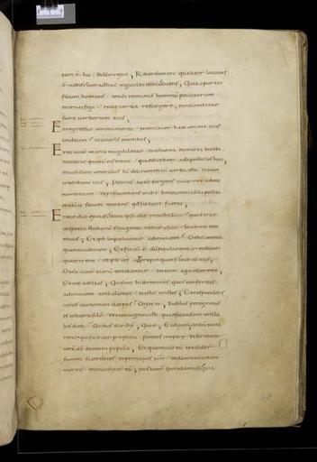 Keywords: MCC-61050 Evangeliarium (Lebuïnuscodex) (220).jpg Artwork nl Anonymous Noordoost-Frankrijk Anonymous Rijnland Anonymous Maasland nl De kern van de boekband van de Lebuïnuscodex wordt gevormd door twee eikenhouten platten De rug en het achterplat zijn overtrokken met zeemleer Het voorplat is rijkelijk versierd met verguld zilversmeedwerk reliëfs van walrustand en verscheidene stenen De compositie van de bekleding van het voorplat wordt bepaald door een verguld zilveren filigraankruis Aan de uiteinden van de kruisarmen bevinden zich vierpassen met overhoeks vierkant eveneens met filigraan gedecoreerd Hiervan zijn er slechts twee bewaard gebleven en wel die aan de verticale kruisarmen Zij bevatten tevens nog de oorspronkelijke versiering bestaande uit een filigraanmedaillon met een pseudo-camee van respectievelijk een mannen- en een vrouwenhoofd in profiel Het snijpunt van het kruis wordt ingenomen door een ver vooruitstekend Bacchuskopje in chalcedoon te herkennen aan de kleine druiventrosjes in zijn haartooi Het kopje is gevat in een filigraanmedaillon welke op zijn beurt weer is geplaatst op een vierpas van filigraanwerk Op elk van de kruisarmen bevindt zich een ovale steen 'en cabochon' op een medaillon met filigraan Het filigraanwerk van kruis en sierstukken is in de vorm van visblazen In de ruimten tussen de kruisarmen zijn rechthoekige reliëfs van walrustand aangebracht met de vier evangelisten en hun symbool De reliëfs hebben de volgende afmetingen H 10 0 x B 5 5 cm Van links boven naar rechts onder betreft het Mattheus met de engel Johannes met de adelaar Marcus met de gevleugelde leeuw en Lucas met de gevleugelde os De figuren zijn paarsgewijs als elkaars spiegelbeeld ten opzichte van de middenas geplaatst Mattheus en Johannes zitten vrijwel geheel frontaal terwijl Marcus en Lucas meer in profiel zijn afgebeeld Qua opbouw verschillen de vier reliëfs nauwelijks van elkaar Binnen een rand van vierlobbige blaadjes verheffen zich twee zuilen met een basis een kapiteel en een dekplaat Hierop rust een rondboog geflankeerd door twee torens en afgedekt met een fronton dat boven Mattheus en Johannes boogvormig en boven Marcus en Lucas driehoekig is Onder deze overhuiving zitten de evangelisten gekleed in een lang gewaad en mantel met gekruiste benen aan een lessenaar hun blote voeten rustend op een bankje Allen zijn baardeloos en voorzien van een nimbus Voorts houden ze een pen in hun rechterhand terwijl hun linker op een boek ligt of gebarend is opgeheven Boven elk van de evangelisten verschijnt in de opening van het fronton zijn symbool met een spreukband Dit rijkelijk gedecoreerde middenveld wordt omlijst door sierbanden van verguld koper De opbouw van de sierlijsten is steeds dezelfde een opstaande smalle band die op regelmatige afstanden is voorzien van holten met aan weerszijden een brede strook voorzien van een gestanst motief Aan de lange zijden van de boekband bestaat het motief uit palmetten aan de korte zijden uit rozetten Van deze laatstgenoemde stroken ontbreekt steeds de buitenste rand Bij alle stroken met palmettenmotief wijzen de palmetten naar links met uitzondering van de buitenste strook rechtsboven die het motief in tegengestelde richting toont Verguld zilveren rozetten op de hoeken van het voorplat omgeven door een smalle rand van filigraanwerk met cirkelmotief en bekroond met een 'en cabochon' gezette steen completeren het geheel Van de rozet links onder ontbreekt de steen en is slechts de buitenste rand over Aan de voorzijde van de boekband bevinden zich nog de rudimenten van twee sluitingen between u'825' u'1000' u'1150' u'850' u'1199' u'1199' nl perkament eikenhout zilver goud koper walrustand chalcedoon glas leer Size 35 5 26 0 cm nl Hoogte 35 5cm Breedte 26 0cm Diepte 13 5cm Institution Museum Catharijneconvent object history exhibition history credit line nl Foto Museum Catharijneconvent Utrecht foto HetFotoAtelier Peter Rothengatter accession number Object number 61050 Inventory number ABM h1 place of creation https //www catharijneconvent nl/adlib/61050/ View this work on the website of Museum Catharijneconvent Museum Catharijneconvent Cc-zero <gallery> File MCC-61050_Evangeliarium_Lebuïnuscodex_ 11 jpg File MCC-61050_Evangeliarium_Lebuïnuscodex_ 172 jpg File MCC-61050_Evangeliarium_Lebuïnuscodex_ 212 jpg File MCC-61050_Evangeliarium_Lebuïnuscodex_ 61 jpg File MCC-61050_Evangeliarium_Lebuïnuscodex_ 12 jpg File MCC-61050_Evangeliarium_Lebuïnuscodex_ 213 jpg File MCC-61050_Evangeliarium_Lebuïnuscodex_ 56 jpg File MCC-61050_Evangeliarium_Lebuïnuscodex_ 232 jpg File MCC-61050_Evangeliarium_Lebuïnuscodex_ 93 jpg File MCC-61050_Evangeliarium_Lebuïnuscodex_ 99 jpg File MCC-61050_Evangeliarium_Lebuïnuscodex_ 184 jpg File MCC-61050_Evangeliarium_Lebuïnuscodex_ 64 jpg File MCC-61050_Evangeliarium_Lebuïnuscodex_ 299 jpg File MCC-61050_Evangeliarium_Lebuïnuscodex_ 86 jpg File MCC-61050_Evangeliarium_Lebuïnuscodex_ 260 jpg File MCC-61050_Evangeliarium_Lebuïnuscodex_ 159 jpg File MCC-61050_Evangeliarium_Lebuïnuscodex_ 247 jpg File MCC-61050_Evangeliarium_Lebuïnuscodex_ 180 jpg File MCC-61050_Evangeliarium_Lebuïnuscodex_ 121 jpg File MCC-61050_Evangeliarium_Lebuïnuscodex_ 315 jpg File MCC-61050_Evangeliarium_Lebuïnuscodex_ 284 jpg File MCC-61050_Evangeliarium_Lebuïnuscodex_ 33 jpg File MCC-61050_Evangeliarium_Lebuïnuscodex_ 44 jpg File MCC-61050_Evangeliarium_Lebuïnuscodex_ 258 jpg File MCC-61050_Evangeliarium_Lebuïnuscodex_ 237 jpg File MCC-61050_Evangeliarium_Lebuïnuscodex_ 20 jpg File MCC-61050_Evangeliarium_Lebuïnuscodex_ 220 jpg File MCC-61050_Evangeliarium_Lebuïnuscodex_ 279 jpg File MCC-61050_Evangeliarium_Lebuïnuscodex_ 183 jpg File MCC-61050_Evangeliarium_Lebuïnuscodex_ 60 jpg File MCC-61050_Evangeliarium_Lebuïnuscodex_ 166 jpg File MCC-61050_Evangeliarium_Lebuïnuscodex_ 97 jpg File MCC-61050_Evangeliarium_Lebuïnuscodex_ 71 jpg File MCC-61050_Evangeliarium_Lebuïnuscodex_ 132 jpg File MCC-61050_Evangeliarium_Lebuïnus