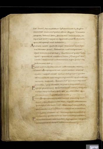 Keywords: MCC-61050 Evangeliarium (Lebuïnuscodex) (205).jpg Artwork nl Anonymous Noordoost-Frankrijk Anonymous Rijnland Anonymous Maasland nl De kern van de boekband van de Lebuïnuscodex wordt gevormd door twee eikenhouten platten De rug en het achterplat zijn overtrokken met zeemleer Het voorplat is rijkelijk versierd met verguld zilversmeedwerk reliëfs van walrustand en verscheidene stenen De compositie van de bekleding van het voorplat wordt bepaald door een verguld zilveren filigraankruis Aan de uiteinden van de kruisarmen bevinden zich vierpassen met overhoeks vierkant eveneens met filigraan gedecoreerd Hiervan zijn er slechts twee bewaard gebleven en wel die aan de verticale kruisarmen Zij bevatten tevens nog de oorspronkelijke versiering bestaande uit een filigraanmedaillon met een pseudo-camee van respectievelijk een mannen- en een vrouwenhoofd in profiel Het snijpunt van het kruis wordt ingenomen door een ver vooruitstekend Bacchuskopje in chalcedoon te herkennen aan de kleine druiventrosjes in zijn haartooi Het kopje is gevat in een filigraanmedaillon welke op zijn beurt weer is geplaatst op een vierpas van filigraanwerk Op elk van de kruisarmen bevindt zich een ovale steen 'en cabochon' op een medaillon met filigraan Het filigraanwerk van kruis en sierstukken is in de vorm van visblazen In de ruimten tussen de kruisarmen zijn rechthoekige reliëfs van walrustand aangebracht met de vier evangelisten en hun symbool De reliëfs hebben de volgende afmetingen H 10 0 x B 5 5 cm Van links boven naar rechts onder betreft het Mattheus met de engel Johannes met de adelaar Marcus met de gevleugelde leeuw en Lucas met de gevleugelde os De figuren zijn paarsgewijs als elkaars spiegelbeeld ten opzichte van de middenas geplaatst Mattheus en Johannes zitten vrijwel geheel frontaal terwijl Marcus en Lucas meer in profiel zijn afgebeeld Qua opbouw verschillen de vier reliëfs nauwelijks van elkaar Binnen een rand van vierlobbige blaadjes verheffen zich twee zuilen met een basis een kapiteel en een dekplaat Hierop rust een rondboog geflankeerd door twee torens en afgedekt met een fronton dat boven Mattheus en Johannes boogvormig en boven Marcus en Lucas driehoekig is Onder deze overhuiving zitten de evangelisten gekleed in een lang gewaad en mantel met gekruiste benen aan een lessenaar hun blote voeten rustend op een bankje Allen zijn baardeloos en voorzien van een nimbus Voorts houden ze een pen in hun rechterhand terwijl hun linker op een boek ligt of gebarend is opgeheven Boven elk van de evangelisten verschijnt in de opening van het fronton zijn symbool met een spreukband Dit rijkelijk gedecoreerde middenveld wordt omlijst door sierbanden van verguld koper De opbouw van de sierlijsten is steeds dezelfde een opstaande smalle band die op regelmatige afstanden is voorzien van holten met aan weerszijden een brede strook voorzien van een gestanst motief Aan de lange zijden van de boekband bestaat het motief uit palmetten aan de korte zijden uit rozetten Van deze laatstgenoemde stroken ontbreekt steeds de buitenste rand Bij alle stroken met palmettenmotief wijzen de palmetten naar links met uitzondering van de buitenste strook rechtsboven die het motief in tegengestelde richting toont Verguld zilveren rozetten op de hoeken van het voorplat omgeven door een smalle rand van filigraanwerk met cirkelmotief en bekroond met een 'en cabochon' gezette steen completeren het geheel Van de rozet links onder ontbreekt de steen en is slechts de buitenste rand over Aan de voorzijde van de boekband bevinden zich nog de rudimenten van twee sluitingen between u'825' u'1000' u'1150' u'850' u'1199' u'1199' nl perkament eikenhout zilver goud koper walrustand chalcedoon glas leer Size 35 5 26 0 cm nl Hoogte 35 5cm Breedte 26 0cm Diepte 13 5cm Institution Museum Catharijneconvent object history exhibition history credit line nl Foto Museum Catharijneconvent Utrecht foto HetFotoAtelier Peter Rothengatter accession number Object number 61050 Inventory number ABM h1 place of creation https //www catharijneconvent nl/adlib/61050/ View this work on the website of Museum Catharijneconvent Museum Catharijneconvent Cc-zero <gallery> File MCC-61050_Evangeliarium_Lebuïnuscodex_ 11 jpg File MCC-61050_Evangeliarium_Lebuïnuscodex_ 172 jpg File MCC-61050_Evangeliarium_Lebuïnuscodex_ 212 jpg File MCC-61050_Evangeliarium_Lebuïnuscodex_ 61 jpg File MCC-61050_Evangeliarium_Lebuïnuscodex_ 12 jpg File MCC-61050_Evangeliarium_Lebuïnuscodex_ 213 jpg File MCC-61050_Evangeliarium_Lebuïnuscodex_ 56 jpg File MCC-61050_Evangeliarium_Lebuïnuscodex_ 232 jpg File MCC-61050_Evangeliarium_Lebuïnuscodex_ 93 jpg File MCC-61050_Evangeliarium_Lebuïnuscodex_ 99 jpg File MCC-61050_Evangeliarium_Lebuïnuscodex_ 184 jpg File MCC-61050_Evangeliarium_Lebuïnuscodex_ 64 jpg File MCC-61050_Evangeliarium_Lebuïnuscodex_ 299 jpg File MCC-61050_Evangeliarium_Lebuïnuscodex_ 86 jpg File MCC-61050_Evangeliarium_Lebuïnuscodex_ 260 jpg File MCC-61050_Evangeliarium_Lebuïnuscodex_ 159 jpg File MCC-61050_Evangeliarium_Lebuïnuscodex_ 247 jpg File MCC-61050_Evangeliarium_Lebuïnuscodex_ 180 jpg File MCC-61050_Evangeliarium_Lebuïnuscodex_ 121 jpg File MCC-61050_Evangeliarium_Lebuïnuscodex_ 315 jpg File MCC-61050_Evangeliarium_Lebuïnuscodex_ 284 jpg File MCC-61050_Evangeliarium_Lebuïnuscodex_ 33 jpg File MCC-61050_Evangeliarium_Lebuïnuscodex_ 44 jpg File MCC-61050_Evangeliarium_Lebuïnuscodex_ 258 jpg File MCC-61050_Evangeliarium_Lebuïnuscodex_ 237 jpg File MCC-61050_Evangeliarium_Lebuïnuscodex_ 20 jpg File MCC-61050_Evangeliarium_Lebuïnuscodex_ 220 jpg File MCC-61050_Evangeliarium_Lebuïnuscodex_ 279 jpg File MCC-61050_Evangeliarium_Lebuïnuscodex_ 183 jpg File MCC-61050_Evangeliarium_Lebuïnuscodex_ 60 jpg File MCC-61050_Evangeliarium_Lebuïnuscodex_ 166 jpg File MCC-61050_Evangeliarium_Lebuïnuscodex_ 97 jpg File MCC-61050_Evangeliarium_Lebuïnuscodex_ 71 jpg File MCC-61050_Evangeliarium_Lebuïnuscodex_ 132 jpg File MCC-61050_Evangeliarium_Lebuïnus