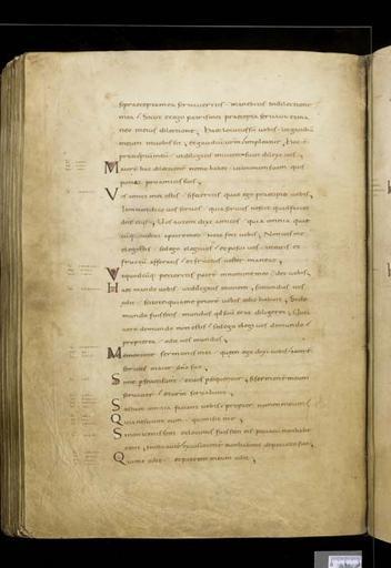Keywords: MCC-61050 Evangeliarium (Lebuïnuscodex) (268).jpg Artwork nl Anonymous Noordoost-Frankrijk Anonymous Rijnland Anonymous Maasland nl De kern van de boekband van de Lebuïnuscodex wordt gevormd door twee eikenhouten platten De rug en het achterplat zijn overtrokken met zeemleer Het voorplat is rijkelijk versierd met verguld zilversmeedwerk reliëfs van walrustand en verscheidene stenen De compositie van de bekleding van het voorplat wordt bepaald door een verguld zilveren filigraankruis Aan de uiteinden van de kruisarmen bevinden zich vierpassen met overhoeks vierkant eveneens met filigraan gedecoreerd Hiervan zijn er slechts twee bewaard gebleven en wel die aan de verticale kruisarmen Zij bevatten tevens nog de oorspronkelijke versiering bestaande uit een filigraanmedaillon met een pseudo-camee van respectievelijk een mannen- en een vrouwenhoofd in profiel Het snijpunt van het kruis wordt ingenomen door een ver vooruitstekend Bacchuskopje in chalcedoon te herkennen aan de kleine druiventrosjes in zijn haartooi Het kopje is gevat in een filigraanmedaillon welke op zijn beurt weer is geplaatst op een vierpas van filigraanwerk Op elk van de kruisarmen bevindt zich een ovale steen 'en cabochon' op een medaillon met filigraan Het filigraanwerk van kruis en sierstukken is in de vorm van visblazen In de ruimten tussen de kruisarmen zijn rechthoekige reliëfs van walrustand aangebracht met de vier evangelisten en hun symbool De reliëfs hebben de volgende afmetingen H 10 0 x B 5 5 cm Van links boven naar rechts onder betreft het Mattheus met de engel Johannes met de adelaar Marcus met de gevleugelde leeuw en Lucas met de gevleugelde os De figuren zijn paarsgewijs als elkaars spiegelbeeld ten opzichte van de middenas geplaatst Mattheus en Johannes zitten vrijwel geheel frontaal terwijl Marcus en Lucas meer in profiel zijn afgebeeld Qua opbouw verschillen de vier reliëfs nauwelijks van elkaar Binnen een rand van vierlobbige blaadjes verheffen zich twee zuilen met een basis een kapiteel en een dekplaat Hierop rust een rondboog geflankeerd door twee torens en afgedekt met een fronton dat boven Mattheus en Johannes boogvormig en boven Marcus en Lucas driehoekig is Onder deze overhuiving zitten de evangelisten gekleed in een lang gewaad en mantel met gekruiste benen aan een lessenaar hun blote voeten rustend op een bankje Allen zijn baardeloos en voorzien van een nimbus Voorts houden ze een pen in hun rechterhand terwijl hun linker op een boek ligt of gebarend is opgeheven Boven elk van de evangelisten verschijnt in de opening van het fronton zijn symbool met een spreukband Dit rijkelijk gedecoreerde middenveld wordt omlijst door sierbanden van verguld koper De opbouw van de sierlijsten is steeds dezelfde een opstaande smalle band die op regelmatige afstanden is voorzien van holten met aan weerszijden een brede strook voorzien van een gestanst motief Aan de lange zijden van de boekband bestaat het motief uit palmetten aan de korte zijden uit rozetten Van deze laatstgenoemde stroken ontbreekt steeds de buitenste rand Bij alle stroken met palmettenmotief wijzen de palmetten naar links met uitzondering van de buitenste strook rechtsboven die het motief in tegengestelde richting toont Verguld zilveren rozetten op de hoeken van het voorplat omgeven door een smalle rand van filigraanwerk met cirkelmotief en bekroond met een 'en cabochon' gezette steen completeren het geheel Van de rozet links onder ontbreekt de steen en is slechts de buitenste rand over Aan de voorzijde van de boekband bevinden zich nog de rudimenten van twee sluitingen between u'825' u'1000' u'1150' u'850' u'1199' u'1199' nl perkament eikenhout zilver goud koper walrustand chalcedoon glas leer Size 35 5 26 0 cm nl Hoogte 35 5cm Breedte 26 0cm Diepte 13 5cm Institution Museum Catharijneconvent object history exhibition history credit line nl Foto Museum Catharijneconvent Utrecht foto HetFotoAtelier Peter Rothengatter accession number Object number 61050 Inventory number ABM h1 place of creation https //www catharijneconvent nl/adlib/61050/ View this work on the website of Museum Catharijneconvent Museum Catharijneconvent Cc-zero <gallery> File MCC-61050_Evangeliarium_Lebuïnuscodex_ 11 jpg File MCC-61050_Evangeliarium_Lebuïnuscodex_ 172 jpg File MCC-61050_Evangeliarium_Lebuïnuscodex_ 212 jpg File MCC-61050_Evangeliarium_Lebuïnuscodex_ 61 jpg File MCC-61050_Evangeliarium_Lebuïnuscodex_ 12 jpg File MCC-61050_Evangeliarium_Lebuïnuscodex_ 213 jpg File MCC-61050_Evangeliarium_Lebuïnuscodex_ 56 jpg File MCC-61050_Evangeliarium_Lebuïnuscodex_ 232 jpg File MCC-61050_Evangeliarium_Lebuïnuscodex_ 93 jpg File MCC-61050_Evangeliarium_Lebuïnuscodex_ 99 jpg File MCC-61050_Evangeliarium_Lebuïnuscodex_ 184 jpg File MCC-61050_Evangeliarium_Lebuïnuscodex_ 64 jpg File MCC-61050_Evangeliarium_Lebuïnuscodex_ 299 jpg File MCC-61050_Evangeliarium_Lebuïnuscodex_ 86 jpg File MCC-61050_Evangeliarium_Lebuïnuscodex_ 260 jpg File MCC-61050_Evangeliarium_Lebuïnuscodex_ 159 jpg File MCC-61050_Evangeliarium_Lebuïnuscodex_ 247 jpg File MCC-61050_Evangeliarium_Lebuïnuscodex_ 180 jpg File MCC-61050_Evangeliarium_Lebuïnuscodex_ 121 jpg File MCC-61050_Evangeliarium_Lebuïnuscodex_ 315 jpg File MCC-61050_Evangeliarium_Lebuïnuscodex_ 284 jpg File MCC-61050_Evangeliarium_Lebuïnuscodex_ 33 jpg File MCC-61050_Evangeliarium_Lebuïnuscodex_ 44 jpg File MCC-61050_Evangeliarium_Lebuïnuscodex_ 258 jpg File MCC-61050_Evangeliarium_Lebuïnuscodex_ 237 jpg File MCC-61050_Evangeliarium_Lebuïnuscodex_ 20 jpg File MCC-61050_Evangeliarium_Lebuïnuscodex_ 220 jpg File MCC-61050_Evangeliarium_Lebuïnuscodex_ 279 jpg File MCC-61050_Evangeliarium_Lebuïnuscodex_ 183 jpg File MCC-61050_Evangeliarium_Lebuïnuscodex_ 60 jpg File MCC-61050_Evangeliarium_Lebuïnuscodex_ 166 jpg File MCC-61050_Evangeliarium_Lebuïnuscodex_ 97 jpg File MCC-61050_Evangeliarium_Lebuïnuscodex_ 71 jpg File MCC-61050_Evangeliarium_Lebuïnuscodex_ 132 jpg File MCC-61050_Evangeliarium_Lebuïnus