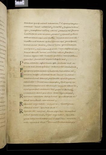 Keywords: MCC-61050 Evangeliarium (Lebuïnuscodex) (229).jpg Artwork nl Anonymous Noordoost-Frankrijk Anonymous Rijnland Anonymous Maasland nl De kern van de boekband van de Lebuïnuscodex wordt gevormd door twee eikenhouten platten De rug en het achterplat zijn overtrokken met zeemleer Het voorplat is rijkelijk versierd met verguld zilversmeedwerk reliëfs van walrustand en verscheidene stenen De compositie van de bekleding van het voorplat wordt bepaald door een verguld zilveren filigraankruis Aan de uiteinden van de kruisarmen bevinden zich vierpassen met overhoeks vierkant eveneens met filigraan gedecoreerd Hiervan zijn er slechts twee bewaard gebleven en wel die aan de verticale kruisarmen Zij bevatten tevens nog de oorspronkelijke versiering bestaande uit een filigraanmedaillon met een pseudo-camee van respectievelijk een mannen- en een vrouwenhoofd in profiel Het snijpunt van het kruis wordt ingenomen door een ver vooruitstekend Bacchuskopje in chalcedoon te herkennen aan de kleine druiventrosjes in zijn haartooi Het kopje is gevat in een filigraanmedaillon welke op zijn beurt weer is geplaatst op een vierpas van filigraanwerk Op elk van de kruisarmen bevindt zich een ovale steen 'en cabochon' op een medaillon met filigraan Het filigraanwerk van kruis en sierstukken is in de vorm van visblazen In de ruimten tussen de kruisarmen zijn rechthoekige reliëfs van walrustand aangebracht met de vier evangelisten en hun symbool De reliëfs hebben de volgende afmetingen H 10 0 x B 5 5 cm Van links boven naar rechts onder betreft het Mattheus met de engel Johannes met de adelaar Marcus met de gevleugelde leeuw en Lucas met de gevleugelde os De figuren zijn paarsgewijs als elkaars spiegelbeeld ten opzichte van de middenas geplaatst Mattheus en Johannes zitten vrijwel geheel frontaal terwijl Marcus en Lucas meer in profiel zijn afgebeeld Qua opbouw verschillen de vier reliëfs nauwelijks van elkaar Binnen een rand van vierlobbige blaadjes verheffen zich twee zuilen met een basis een kapiteel en een dekplaat Hierop rust een rondboog geflankeerd door twee torens en afgedekt met een fronton dat boven Mattheus en Johannes boogvormig en boven Marcus en Lucas driehoekig is Onder deze overhuiving zitten de evangelisten gekleed in een lang gewaad en mantel met gekruiste benen aan een lessenaar hun blote voeten rustend op een bankje Allen zijn baardeloos en voorzien van een nimbus Voorts houden ze een pen in hun rechterhand terwijl hun linker op een boek ligt of gebarend is opgeheven Boven elk van de evangelisten verschijnt in de opening van het fronton zijn symbool met een spreukband Dit rijkelijk gedecoreerde middenveld wordt omlijst door sierbanden van verguld koper De opbouw van de sierlijsten is steeds dezelfde een opstaande smalle band die op regelmatige afstanden is voorzien van holten met aan weerszijden een brede strook voorzien van een gestanst motief Aan de lange zijden van de boekband bestaat het motief uit palmetten aan de korte zijden uit rozetten Van deze laatstgenoemde stroken ontbreekt steeds de buitenste rand Bij alle stroken met palmettenmotief wijzen de palmetten naar links met uitzondering van de buitenste strook rechtsboven die het motief in tegengestelde richting toont Verguld zilveren rozetten op de hoeken van het voorplat omgeven door een smalle rand van filigraanwerk met cirkelmotief en bekroond met een 'en cabochon' gezette steen completeren het geheel Van de rozet links onder ontbreekt de steen en is slechts de buitenste rand over Aan de voorzijde van de boekband bevinden zich nog de rudimenten van twee sluitingen between u'825' u'1000' u'1150' u'850' u'1199' u'1199' nl perkament eikenhout zilver goud koper walrustand chalcedoon glas leer Size 35 5 26 0 cm nl Hoogte 35 5cm Breedte 26 0cm Diepte 13 5cm Institution Museum Catharijneconvent object history exhibition history credit line nl Foto Museum Catharijneconvent Utrecht foto HetFotoAtelier Peter Rothengatter accession number Object number 61050 Inventory number ABM h1 place of creation https //www catharijneconvent nl/adlib/61050/ View this work on the website of Museum Catharijneconvent Museum Catharijneconvent Cc-zero <gallery> File MCC-61050_Evangeliarium_Lebuïnuscodex_ 11 jpg File MCC-61050_Evangeliarium_Lebuïnuscodex_ 172 jpg File MCC-61050_Evangeliarium_Lebuïnuscodex_ 212 jpg File MCC-61050_Evangeliarium_Lebuïnuscodex_ 61 jpg File MCC-61050_Evangeliarium_Lebuïnuscodex_ 12 jpg File MCC-61050_Evangeliarium_Lebuïnuscodex_ 213 jpg File MCC-61050_Evangeliarium_Lebuïnuscodex_ 56 jpg File MCC-61050_Evangeliarium_Lebuïnuscodex_ 232 jpg File MCC-61050_Evangeliarium_Lebuïnuscodex_ 93 jpg File MCC-61050_Evangeliarium_Lebuïnuscodex_ 99 jpg File MCC-61050_Evangeliarium_Lebuïnuscodex_ 184 jpg File MCC-61050_Evangeliarium_Lebuïnuscodex_ 64 jpg File MCC-61050_Evangeliarium_Lebuïnuscodex_ 299 jpg File MCC-61050_Evangeliarium_Lebuïnuscodex_ 86 jpg File MCC-61050_Evangeliarium_Lebuïnuscodex_ 260 jpg File MCC-61050_Evangeliarium_Lebuïnuscodex_ 159 jpg File MCC-61050_Evangeliarium_Lebuïnuscodex_ 247 jpg File MCC-61050_Evangeliarium_Lebuïnuscodex_ 180 jpg File MCC-61050_Evangeliarium_Lebuïnuscodex_ 121 jpg File MCC-61050_Evangeliarium_Lebuïnuscodex_ 315 jpg File MCC-61050_Evangeliarium_Lebuïnuscodex_ 284 jpg File MCC-61050_Evangeliarium_Lebuïnuscodex_ 33 jpg File MCC-61050_Evangeliarium_Lebuïnuscodex_ 44 jpg File MCC-61050_Evangeliarium_Lebuïnuscodex_ 258 jpg File MCC-61050_Evangeliarium_Lebuïnuscodex_ 237 jpg File MCC-61050_Evangeliarium_Lebuïnuscodex_ 20 jpg File MCC-61050_Evangeliarium_Lebuïnuscodex_ 220 jpg File MCC-61050_Evangeliarium_Lebuïnuscodex_ 279 jpg File MCC-61050_Evangeliarium_Lebuïnuscodex_ 183 jpg File MCC-61050_Evangeliarium_Lebuïnuscodex_ 60 jpg File MCC-61050_Evangeliarium_Lebuïnuscodex_ 166 jpg File MCC-61050_Evangeliarium_Lebuïnuscodex_ 97 jpg File MCC-61050_Evangeliarium_Lebuïnuscodex_ 71 jpg File MCC-61050_Evangeliarium_Lebuïnuscodex_ 132 jpg File MCC-61050_Evangeliarium_Lebuïnus