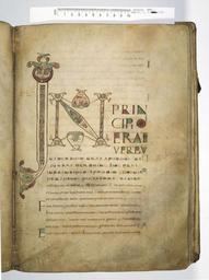 Keywords: MCC-61050 Evangeliarium (Lebuïnuscodex) (225).jpg Artwork nl Anonymous Noordoost-Frankrijk Anonymous Rijnland Anonymous Maasland nl De kern van de boekband van de Lebuïnuscodex wordt gevormd door twee eikenhouten platten De rug en het achterplat zijn overtrokken met zeemleer Het voorplat is rijkelijk versierd met verguld zilversmeedwerk reliëfs van walrustand en verscheidene stenen De compositie van de bekleding van het voorplat wordt bepaald door een verguld zilveren filigraankruis Aan de uiteinden van de kruisarmen bevinden zich vierpassen met overhoeks vierkant eveneens met filigraan gedecoreerd Hiervan zijn er slechts twee bewaard gebleven en wel die aan de verticale kruisarmen Zij bevatten tevens nog de oorspronkelijke versiering bestaande uit een filigraanmedaillon met een pseudo-camee van respectievelijk een mannen- en een vrouwenhoofd in profiel Het snijpunt van het kruis wordt ingenomen door een ver vooruitstekend Bacchuskopje in chalcedoon te herkennen aan de kleine druiventrosjes in zijn haartooi Het kopje is gevat in een filigraanmedaillon welke op zijn beurt weer is geplaatst op een vierpas van filigraanwerk Op elk van de kruisarmen bevindt zich een ovale steen 'en cabochon' op een medaillon met filigraan Het filigraanwerk van kruis en sierstukken is in de vorm van visblazen In de ruimten tussen de kruisarmen zijn rechthoekige reliëfs van walrustand aangebracht met de vier evangelisten en hun symbool De reliëfs hebben de volgende afmetingen H 10 0 x B 5 5 cm Van links boven naar rechts onder betreft het Mattheus met de engel Johannes met de adelaar Marcus met de gevleugelde leeuw en Lucas met de gevleugelde os De figuren zijn paarsgewijs als elkaars spiegelbeeld ten opzichte van de middenas geplaatst Mattheus en Johannes zitten vrijwel geheel frontaal terwijl Marcus en Lucas meer in profiel zijn afgebeeld Qua opbouw verschillen de vier reliëfs nauwelijks van elkaar Binnen een rand van vierlobbige blaadjes verheffen zich twee zuilen met een basis een kapiteel en een dekplaat Hierop rust een rondboog geflankeerd door twee torens en afgedekt met een fronton dat boven Mattheus en Johannes boogvormig en boven Marcus en Lucas driehoekig is Onder deze overhuiving zitten de evangelisten gekleed in een lang gewaad en mantel met gekruiste benen aan een lessenaar hun blote voeten rustend op een bankje Allen zijn baardeloos en voorzien van een nimbus Voorts houden ze een pen in hun rechterhand terwijl hun linker op een boek ligt of gebarend is opgeheven Boven elk van de evangelisten verschijnt in de opening van het fronton zijn symbool met een spreukband Dit rijkelijk gedecoreerde middenveld wordt omlijst door sierbanden van verguld koper De opbouw van de sierlijsten is steeds dezelfde een opstaande smalle band die op regelmatige afstanden is voorzien van holten met aan weerszijden een brede strook voorzien van een gestanst motief Aan de lange zijden van de boekband bestaat het motief uit palmetten aan de korte zijden uit rozetten Van deze laatstgenoemde stroken ontbreekt steeds de buitenste rand Bij alle stroken met palmettenmotief wijzen de palmetten naar links met uitzondering van de buitenste strook rechtsboven die het motief in tegengestelde richting toont Verguld zilveren rozetten op de hoeken van het voorplat omgeven door een smalle rand van filigraanwerk met cirkelmotief en bekroond met een 'en cabochon' gezette steen completeren het geheel Van de rozet links onder ontbreekt de steen en is slechts de buitenste rand over Aan de voorzijde van de boekband bevinden zich nog de rudimenten van twee sluitingen between u'825' u'1000' u'1150' u'850' u'1199' u'1199' nl perkament eikenhout zilver goud koper walrustand chalcedoon glas leer Size 35 5 26 0 cm nl Hoogte 35 5cm Breedte 26 0cm Diepte 13 5cm Institution Museum Catharijneconvent object history exhibition history credit line nl Foto Museum Catharijneconvent Utrecht foto HetFotoAtelier Peter Rothengatter Reproduction title nl Begin van het evangelie van Johannes accession number Object number 61050 Inventory number ABM h1 place of creation https //www catharijneconvent nl/adlib/61050/ View this work on the website of Museum Catharijneconvent Museum Catharijneconvent Cc-zero <gallery> File MCC-61050_Evangeliarium_Lebuïnuscodex_ 11 jpg File MCC-61050_Evangeliarium_Lebuïnuscodex_ 172 jpg File MCC-61050_Evangeliarium_Lebuïnuscodex_ 212 jpg File MCC-61050_Evangeliarium_Lebuïnuscodex_ 61 jpg File MCC-61050_Evangeliarium_Lebuïnuscodex_ 12 jpg File MCC-61050_Evangeliarium_Lebuïnuscodex_ 213 jpg File MCC-61050_Evangeliarium_Lebuïnuscodex_ 56 jpg File MCC-61050_Evangeliarium_Lebuïnuscodex_ 232 jpg File MCC-61050_Evangeliarium_Lebuïnuscodex_ 93 jpg File MCC-61050_Evangeliarium_Lebuïnuscodex_ 99 jpg File MCC-61050_Evangeliarium_Lebuïnuscodex_ 184 jpg File MCC-61050_Evangeliarium_Lebuïnuscodex_ 64 jpg File MCC-61050_Evangeliarium_Lebuïnuscodex_ 299 jpg File MCC-61050_Evangeliarium_Lebuïnuscodex_ 86 jpg File MCC-61050_Evangeliarium_Lebuïnuscodex_ 260 jpg File MCC-61050_Evangeliarium_Lebuïnuscodex_ 159 jpg File MCC-61050_Evangeliarium_Lebuïnuscodex_ 247 jpg File MCC-61050_Evangeliarium_Lebuïnuscodex_ 180 jpg File MCC-61050_Evangeliarium_Lebuïnuscodex_ 121 jpg File MCC-61050_Evangeliarium_Lebuïnuscodex_ 315 jpg File MCC-61050_Evangeliarium_Lebuïnuscodex_ 284 jpg File MCC-61050_Evangeliarium_Lebuïnuscodex_ 33 jpg File MCC-61050_Evangeliarium_Lebuïnuscodex_ 44 jpg File MCC-61050_Evangeliarium_Lebuïnuscodex_ 258 jpg File MCC-61050_Evangeliarium_Lebuïnuscodex_ 237 jpg File MCC-61050_Evangeliarium_Lebuïnuscodex_ 20 jpg File MCC-61050_Evangeliarium_Lebuïnuscodex_ 220 jpg File MCC-61050_Evangeliarium_Lebuïnuscodex_ 279 jpg File MCC-61050_Evangeliarium_Lebuïnuscodex_ 183 jpg File MCC-61050_Evangeliarium_Lebuïnuscodex_ 60 jpg File MCC-61050_Evangeliarium_Lebuïnuscodex_ 166 jpg File MCC-61050_Evangeliarium_Lebuïnuscodex_ 97 jpg File MCC-61050_Evangeliarium_Lebuïnuscodex_ 71 jpg File MCC-61050_Evangeliarium_Leb