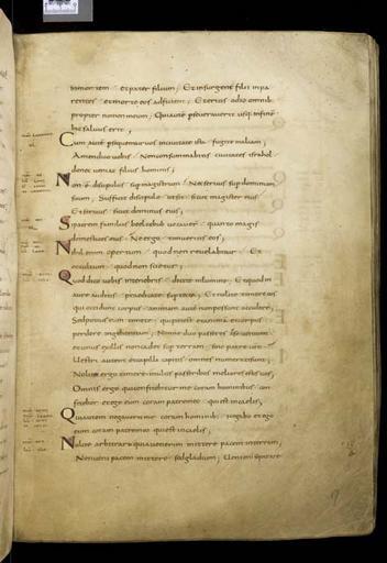 Keywords: MCC-61050 Evangeliarium (Lebuïnuscodex) (36).jpg Artwork nl Anonymous Noordoost-Frankrijk Anonymous Rijnland Anonymous Maasland nl De kern van de boekband van de Lebuïnuscodex wordt gevormd door twee eikenhouten platten De rug en het achterplat zijn overtrokken met zeemleer Het voorplat is rijkelijk versierd met verguld zilversmeedwerk reliëfs van walrustand en verscheidene stenen De compositie van de bekleding van het voorplat wordt bepaald door een verguld zilveren filigraankruis Aan de uiteinden van de kruisarmen bevinden zich vierpassen met overhoeks vierkant eveneens met filigraan gedecoreerd Hiervan zijn er slechts twee bewaard gebleven en wel die aan de verticale kruisarmen Zij bevatten tevens nog de oorspronkelijke versiering bestaande uit een filigraanmedaillon met een pseudo-camee van respectievelijk een mannen- en een vrouwenhoofd in profiel Het snijpunt van het kruis wordt ingenomen door een ver vooruitstekend Bacchuskopje in chalcedoon te herkennen aan de kleine druiventrosjes in zijn haartooi Het kopje is gevat in een filigraanmedaillon welke op zijn beurt weer is geplaatst op een vierpas van filigraanwerk Op elk van de kruisarmen bevindt zich een ovale steen 'en cabochon' op een medaillon met filigraan Het filigraanwerk van kruis en sierstukken is in de vorm van visblazen In de ruimten tussen de kruisarmen zijn rechthoekige reliëfs van walrustand aangebracht met de vier evangelisten en hun symbool De reliëfs hebben de volgende afmetingen H 10 0 x B 5 5 cm Van links boven naar rechts onder betreft het Mattheus met de engel Johannes met de adelaar Marcus met de gevleugelde leeuw en Lucas met de gevleugelde os De figuren zijn paarsgewijs als elkaars spiegelbeeld ten opzichte van de middenas geplaatst Mattheus en Johannes zitten vrijwel geheel frontaal terwijl Marcus en Lucas meer in profiel zijn afgebeeld Qua opbouw verschillen de vier reliëfs nauwelijks van elkaar Binnen een rand van vierlobbige blaadjes verheffen zich twee zuilen met een basis een kapiteel en een dekplaat Hierop rust een rondboog geflankeerd door twee torens en afgedekt met een fronton dat boven Mattheus en Johannes boogvormig en boven Marcus en Lucas driehoekig is Onder deze overhuiving zitten de evangelisten gekleed in een lang gewaad en mantel met gekruiste benen aan een lessenaar hun blote voeten rustend op een bankje Allen zijn baardeloos en voorzien van een nimbus Voorts houden ze een pen in hun rechterhand terwijl hun linker op een boek ligt of gebarend is opgeheven Boven elk van de evangelisten verschijnt in de opening van het fronton zijn symbool met een spreukband Dit rijkelijk gedecoreerde middenveld wordt omlijst door sierbanden van verguld koper De opbouw van de sierlijsten is steeds dezelfde een opstaande smalle band die op regelmatige afstanden is voorzien van holten met aan weerszijden een brede strook voorzien van een gestanst motief Aan de lange zijden van de boekband bestaat het motief uit palmetten aan de korte zijden uit rozetten Van deze laatstgenoemde stroken ontbreekt steeds de buitenste rand Bij alle stroken met palmettenmotief wijzen de palmetten naar links met uitzondering van de buitenste strook rechtsboven die het motief in tegengestelde richting toont Verguld zilveren rozetten op de hoeken van het voorplat omgeven door een smalle rand van filigraanwerk met cirkelmotief en bekroond met een 'en cabochon' gezette steen completeren het geheel Van de rozet links onder ontbreekt de steen en is slechts de buitenste rand over Aan de voorzijde van de boekband bevinden zich nog de rudimenten van twee sluitingen between u'825' u'1000' u'1150' u'850' u'1199' u'1199' nl perkament eikenhout zilver goud koper walrustand chalcedoon glas leer Size 35 5 26 0 cm nl Hoogte 35 5cm Breedte 26 0cm Diepte 13 5cm Institution Museum Catharijneconvent object history exhibition history credit line nl Foto Museum Catharijneconvent Utrecht foto HetFotoAtelier Peter Rothengatter accession number Object number 61050 Inventory number ABM h1 place of creation https //www catharijneconvent nl/adlib/61050/ View this work on the website of Museum Catharijneconvent Museum Catharijneconvent Cc-zero <gallery> File MCC-61050_Evangeliarium_Lebuïnuscodex_ 11 jpg File MCC-61050_Evangeliarium_Lebuïnuscodex_ 172 jpg File MCC-61050_Evangeliarium_Lebuïnuscodex_ 212 jpg File MCC-61050_Evangeliarium_Lebuïnuscodex_ 61 jpg File MCC-61050_Evangeliarium_Lebuïnuscodex_ 12 jpg File MCC-61050_Evangeliarium_Lebuïnuscodex_ 213 jpg File MCC-61050_Evangeliarium_Lebuïnuscodex_ 56 jpg File MCC-61050_Evangeliarium_Lebuïnuscodex_ 232 jpg File MCC-61050_Evangeliarium_Lebuïnuscodex_ 93 jpg File MCC-61050_Evangeliarium_Lebuïnuscodex_ 99 jpg File MCC-61050_Evangeliarium_Lebuïnuscodex_ 184 jpg File MCC-61050_Evangeliarium_Lebuïnuscodex_ 64 jpg File MCC-61050_Evangeliarium_Lebuïnuscodex_ 299 jpg File MCC-61050_Evangeliarium_Lebuïnuscodex_ 86 jpg File MCC-61050_Evangeliarium_Lebuïnuscodex_ 260 jpg File MCC-61050_Evangeliarium_Lebuïnuscodex_ 159 jpg File MCC-61050_Evangeliarium_Lebuïnuscodex_ 247 jpg File MCC-61050_Evangeliarium_Lebuïnuscodex_ 180 jpg File MCC-61050_Evangeliarium_Lebuïnuscodex_ 121 jpg File MCC-61050_Evangeliarium_Lebuïnuscodex_ 315 jpg File MCC-61050_Evangeliarium_Lebuïnuscodex_ 284 jpg File MCC-61050_Evangeliarium_Lebuïnuscodex_ 33 jpg File MCC-61050_Evangeliarium_Lebuïnuscodex_ 44 jpg File MCC-61050_Evangeliarium_Lebuïnuscodex_ 258 jpg File MCC-61050_Evangeliarium_Lebuïnuscodex_ 237 jpg File MCC-61050_Evangeliarium_Lebuïnuscodex_ 20 jpg File MCC-61050_Evangeliarium_Lebuïnuscodex_ 220 jpg File MCC-61050_Evangeliarium_Lebuïnuscodex_ 279 jpg File MCC-61050_Evangeliarium_Lebuïnuscodex_ 183 jpg File MCC-61050_Evangeliarium_Lebuïnuscodex_ 60 jpg File MCC-61050_Evangeliarium_Lebuïnuscodex_ 166 jpg File MCC-61050_Evangeliarium_Lebuïnuscodex_ 97 jpg File MCC-61050_Evangeliarium_Lebuïnuscodex_ 71 jpg File MCC-61050_Evangeliarium_Lebuïnuscodex_ 132 jpg File MCC-61050_Evangeliarium_Lebuïnusc