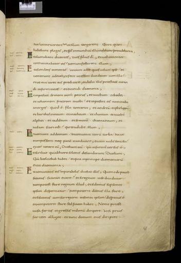 Keywords: MCC-61050 Evangeliarium (Lebuïnuscodex) (99).jpg Artwork nl Anonymous Noordoost-Frankrijk Anonymous Rijnland Anonymous Maasland nl De kern van de boekband van de Lebuïnuscodex wordt gevormd door twee eikenhouten platten De rug en het achterplat zijn overtrokken met zeemleer Het voorplat is rijkelijk versierd met verguld zilversmeedwerk reliëfs van walrustand en verscheidene stenen De compositie van de bekleding van het voorplat wordt bepaald door een verguld zilveren filigraankruis Aan de uiteinden van de kruisarmen bevinden zich vierpassen met overhoeks vierkant eveneens met filigraan gedecoreerd Hiervan zijn er slechts twee bewaard gebleven en wel die aan de verticale kruisarmen Zij bevatten tevens nog de oorspronkelijke versiering bestaande uit een filigraanmedaillon met een pseudo-camee van respectievelijk een mannen- en een vrouwenhoofd in profiel Het snijpunt van het kruis wordt ingenomen door een ver vooruitstekend Bacchuskopje in chalcedoon te herkennen aan de kleine druiventrosjes in zijn haartooi Het kopje is gevat in een filigraanmedaillon welke op zijn beurt weer is geplaatst op een vierpas van filigraanwerk Op elk van de kruisarmen bevindt zich een ovale steen 'en cabochon' op een medaillon met filigraan Het filigraanwerk van kruis en sierstukken is in de vorm van visblazen In de ruimten tussen de kruisarmen zijn rechthoekige reliëfs van walrustand aangebracht met de vier evangelisten en hun symbool De reliëfs hebben de volgende afmetingen H 10 0 x B 5 5 cm Van links boven naar rechts onder betreft het Mattheus met de engel Johannes met de adelaar Marcus met de gevleugelde leeuw en Lucas met de gevleugelde os De figuren zijn paarsgewijs als elkaars spiegelbeeld ten opzichte van de middenas geplaatst Mattheus en Johannes zitten vrijwel geheel frontaal terwijl Marcus en Lucas meer in profiel zijn afgebeeld Qua opbouw verschillen de vier reliëfs nauwelijks van elkaar Binnen een rand van vierlobbige blaadjes verheffen zich twee zuilen met een basis een kapiteel en een dekplaat Hierop rust een rondboog geflankeerd door twee torens en afgedekt met een fronton dat boven Mattheus en Johannes boogvormig en boven Marcus en Lucas driehoekig is Onder deze overhuiving zitten de evangelisten gekleed in een lang gewaad en mantel met gekruiste benen aan een lessenaar hun blote voeten rustend op een bankje Allen zijn baardeloos en voorzien van een nimbus Voorts houden ze een pen in hun rechterhand terwijl hun linker op een boek ligt of gebarend is opgeheven Boven elk van de evangelisten verschijnt in de opening van het fronton zijn symbool met een spreukband Dit rijkelijk gedecoreerde middenveld wordt omlijst door sierbanden van verguld koper De opbouw van de sierlijsten is steeds dezelfde een opstaande smalle band die op regelmatige afstanden is voorzien van holten met aan weerszijden een brede strook voorzien van een gestanst motief Aan de lange zijden van de boekband bestaat het motief uit palmetten aan de korte zijden uit rozetten Van deze laatstgenoemde stroken ontbreekt steeds de buitenste rand Bij alle stroken met palmettenmotief wijzen de palmetten naar links met uitzondering van de buitenste strook rechtsboven die het motief in tegengestelde richting toont Verguld zilveren rozetten op de hoeken van het voorplat omgeven door een smalle rand van filigraanwerk met cirkelmotief en bekroond met een 'en cabochon' gezette steen completeren het geheel Van de rozet links onder ontbreekt de steen en is slechts de buitenste rand over Aan de voorzijde van de boekband bevinden zich nog de rudimenten van twee sluitingen between u'825' u'1000' u'1150' u'850' u'1199' u'1199' nl perkament eikenhout zilver goud koper walrustand chalcedoon glas leer Size 35 5 26 0 cm nl Hoogte 35 5cm Breedte 26 0cm Diepte 13 5cm Institution Museum Catharijneconvent object history exhibition history credit line nl Foto Museum Catharijneconvent Utrecht foto HetFotoAtelier Peter Rothengatter accession number Object number 61050 Inventory number ABM h1 place of creation https //www catharijneconvent nl/adlib/61050/ View this work on the website of Museum Catharijneconvent Museum Catharijneconvent Cc-zero <gallery> File MCC-61050_Evangeliarium_Lebuïnuscodex_ 11 jpg File MCC-61050_Evangeliarium_Lebuïnuscodex_ 172 jpg File MCC-61050_Evangeliarium_Lebuïnuscodex_ 212 jpg File MCC-61050_Evangeliarium_Lebuïnuscodex_ 61 jpg File MCC-61050_Evangeliarium_Lebuïnuscodex_ 12 jpg File MCC-61050_Evangeliarium_Lebuïnuscodex_ 213 jpg File MCC-61050_Evangeliarium_Lebuïnuscodex_ 56 jpg File MCC-61050_Evangeliarium_Lebuïnuscodex_ 232 jpg File MCC-61050_Evangeliarium_Lebuïnuscodex_ 93 jpg File MCC-61050_Evangeliarium_Lebuïnuscodex_ 99 jpg File MCC-61050_Evangeliarium_Lebuïnuscodex_ 184 jpg File MCC-61050_Evangeliarium_Lebuïnuscodex_ 64 jpg File MCC-61050_Evangeliarium_Lebuïnuscodex_ 299 jpg File MCC-61050_Evangeliarium_Lebuïnuscodex_ 86 jpg File MCC-61050_Evangeliarium_Lebuïnuscodex_ 260 jpg File MCC-61050_Evangeliarium_Lebuïnuscodex_ 159 jpg File MCC-61050_Evangeliarium_Lebuïnuscodex_ 247 jpg File MCC-61050_Evangeliarium_Lebuïnuscodex_ 180 jpg File MCC-61050_Evangeliarium_Lebuïnuscodex_ 121 jpg File MCC-61050_Evangeliarium_Lebuïnuscodex_ 315 jpg File MCC-61050_Evangeliarium_Lebuïnuscodex_ 284 jpg File MCC-61050_Evangeliarium_Lebuïnuscodex_ 33 jpg File MCC-61050_Evangeliarium_Lebuïnuscodex_ 44 jpg File MCC-61050_Evangeliarium_Lebuïnuscodex_ 258 jpg File MCC-61050_Evangeliarium_Lebuïnuscodex_ 237 jpg File MCC-61050_Evangeliarium_Lebuïnuscodex_ 20 jpg File MCC-61050_Evangeliarium_Lebuïnuscodex_ 220 jpg File MCC-61050_Evangeliarium_Lebuïnuscodex_ 279 jpg File MCC-61050_Evangeliarium_Lebuïnuscodex_ 183 jpg File MCC-61050_Evangeliarium_Lebuïnuscodex_ 60 jpg File MCC-61050_Evangeliarium_Lebuïnuscodex_ 166 jpg File MCC-61050_Evangeliarium_Lebuïnuscodex_ 97 jpg File MCC-61050_Evangeliarium_Lebuïnuscodex_ 71 jpg File MCC-61050_Evangeliarium_Lebuïnuscodex_ 132 jpg File MCC-61050_Evangeliarium_Lebuïnusc