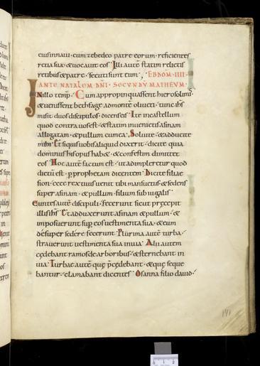 Keywords: MCC-61090 Evangelistarium (Ansfriduscodex) (284).tif Artwork nl Anonymous Neder-Rijn Anonymous St Gallen OSB nl De kern van de boekband van de Ansfriduscodex wordt gevormd door twee eikenhouten platten Het voorplat bestaat uit een verdiept middenveld omgeven door een brede rand Het is beslagen met dunne verguld zilveren platen In het middenveld bevindt zich een verguld zilveren kruis met een verhoogd ingezwenkt achtkantig middenstuk en breed uitlopende armen Het kruis is versierd met filigraan en vijf halfedelstenen te weten een ronde steen van amethist en kornalijn op het snijpunt van de beide kruisarmen een lichtblauwe kwarts respectievelijk een agaat op de brede uiteinden van de verticale kruisarmen en twee nog niet nader bestemde stenen op de horizontale kruisarmen Het filigraanwerk bestaat uit cirkelvormige uitwaaierende ranken met bolletjes aan de uiteinden en in het midden hier en daar kleine rozetjes In de vier velden tussen de kruisarmen zijn steeds twee stenen in een diagonale lijn geplaatst Van boven naar beneden en van links naar rechts betreft het bergkristal en amethist amethist en kwarts kwarts de andere steen is verloren gegaan kwarts en amethist De brede rand rond het verdiepte middenveld is eveneens rijkelijk versierd Op de hoeken zijn geƫmailleerde medaillons met de evangelistensymbolen aangebracht De banderol die de figuren dragen vermeldt de naam van de evangelist Van links boven naar rechts onder betreft het de adelaar van Johannes de gevleugelde mens van Mattheus de gevleugelde leeuw van Marcus en de gevleugelde stier van Lucas Tussen de grote medaillons verdeeld over de lange en korte zijden van de rand bevinden zich zes kleinere geƫmailleerde medaillons Hiervan vormen de bovenste twee op de lange zijden tezamen de kroning van Maria links de gekroonde Moeder Gods en rechts de zegenende Christus Eronder bevinden zich twee medaillons waarop met wierookvaten zwaaiende engelen Op de korte zijden tonen de twee medaillons een afbeelding van een opspringend hert Op de rand bevinden zich verder nog vier alsengemmen met gegraveerde primitieve figuurtjes en zestien halfedelstenen waaronder kwarts amethist bergkristal jaspis en een lagensteen niccolo genaamd Zeven van deze stenen zijn voorzien van een gegraveerde mythologische voorstelling Zie Snijder 1932 voor een gedetailleerde beschrijving van de stenen en voorstellingen De rode rechthoekige jaspis in de onderrand bevat een koefische inscriptie die betekent 'Stel uw vertrouwen in Allah en zoek contact met den heer der getrouwen' Alle sierstukken alsmede de armen en de acht segmenten van het middenstuk van het kruis zijn omlijst met gedraaid gouddraad De rug en het achterplat zijn overtrokken met van oorsprong rood fluweel met rozenmotief Op het achterplat zijn vijf gegraveerde zilveren stukken aangebracht te weten vier ronde medaillons op de hoeken en in het midden een amandelvormige plaquette met een afbeelding van een bisschop omgeven door een rand met palmettenmotief In de buitenste rand staat de volgende Latijnse tekst gegraveerd ORNATU LAPIDUM RUTILANS AUROQUE POLITUM / PRAESULIS ANSFRIDI MARTINO MUNUS OBIVI vert 'versierd met flonkerende edelstenen en schitterend goud ben ik het boek een geschenk van bisschop Ansfridus aan Martinus de Utrechtse Martinuskerk' between u'950' u'1000' u'1000' u'1499' nl perkament eikenhout zilver goud kwarts amethist glas kornalijn bergkristal niccolo jaspis agaat fluweel Size 34 0 26 5 cm nl Hoogte 34 0cm Breedte 26 5cm Diepte 10 0cm Institution Museum Catharijneconvent object history exhibition history credit line nl Foto Museum Catharijneconvent Utrecht foto HetFotoAtelier Peter Rothengatter accession number Object number 61090 Inventory number ABM h2 place of creation https //www catharijneconvent nl/adlib/61090/ View this work on the website of Museum Catharijneconvent Museum Catharijneconvent Cc-zero <gallery> File MCC-61090_Evangelistarium_Ansfriduscodex_ 319 tif File MCC-61090_Evangelistarium_Ansfriduscodex_ 157 tif File MCC-61090_Evangelistarium_Ansfriduscodex_ 103 tif File MCC-61090_Evangelistarium_Ansfriduscodex_ 279 tif File MCC-61090_Evangelistarium_Ansfriduscodex_ 250 tif File MCC-61090_Evangelistarium_Ansfriduscodex_ 104 tif File MCC-61090_Evangelistarium_Ansfriduscodex_ 96 tif File MCC-61090_Evangelistarium_Ansfriduscodex_ 276 tif File MCC-61090_Evangelistarium_Ansfriduscodex_ 114 tif File MCC-61090_Evangelistarium_Ansfriduscodex_ 233 tif File MCC-61090_Evangelistarium_Ansfriduscodex_ 195 tif File MCC-61090_Evangelistarium_Ansfriduscodex_ 261 tif File MCC-61090_Evangelistarium_Ansfriduscodex_ 73 tif File MCC-61090_Evangelistarium_Ansfriduscodex_ 105 tif File MCC-61090_Evangelistarium_Ansfriduscodex_ 40 tif File MCC-61090_Evangelistarium_Ansfriduscodex_ 231 tif File MCC-61090_Evangelistarium_Ansfriduscodex_ 48 tif File MCC-61090_Evangelistarium_Ansfriduscodex_ 43 tif File MCC-61090_Evangelistarium_Ansfriduscodex_ 50 tif File MCC-61090_Evangelistarium_Ansfriduscodex_ 1 tif File MCC-61090_Evangelistarium_Ansfriduscodex_ 198 tif File MCC-61090_Evangelistarium_Ansfriduscodex_ 144 tif File MCC-61090_Evangelistarium_Ansfriduscodex_ 293 tif File MCC-61090_Evangelistarium_Ansfriduscodex_ 109 tif File MCC-61090_Evangelistarium_Ansfriduscodex_ 318 tif File MCC-61090_Evangelistarium_Ansfriduscodex_ 254 tif File MCC-61090_Evangelistarium_Ansfriduscodex_ 301 tif File MCC-61090_Evangelistarium_Ansfriduscodex_ 107 tif File MCC-61090_Evangelistarium_Ansfriduscodex_ 284 tif File MCC-61090_Evangelistarium_Ansfriduscodex_ 251 tif File MCC-61090_Evangelistarium_Ansfriduscodex_ 121 tif File MCC-61090_Evangelistarium_Ansfriduscodex_ 172 tif File MCC-61090_Evangelistarium_Ansfriduscodex_ 213 tif File MCC-61090_Evangelistarium_Ansfriduscodex_ 264 tif File MCC-61090_Evangelistarium_Ansfriduscodex_ 118 tif File MCC-61090_Evangelistarium_Ansfriduscodex_ 90 tif File MCC-61090_Evangelistarium_Ansfriduscodex_ 287 tif File MCC-61090_Evangelistarium_Ansfriduscodex_ 260 tif File MCC-61090_Eva