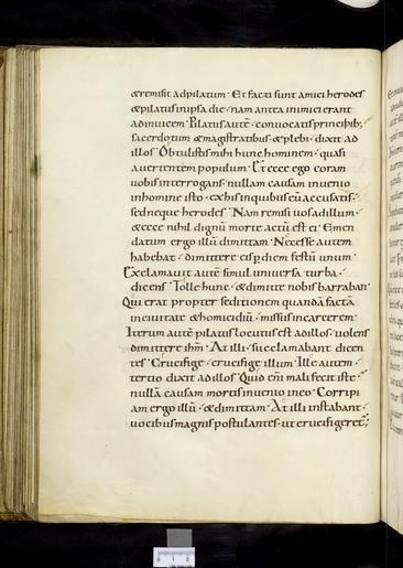 Keywords: MCC-61090 Evangelistarium (Ansfriduscodex) (128).tif Artwork nl Anonymous Neder-Rijn Anonymous St Gallen OSB nl De kern van de boekband van de Ansfriduscodex wordt gevormd door twee eikenhouten platten Het voorplat bestaat uit een verdiept middenveld omgeven door een brede rand Het is beslagen met dunne verguld zilveren platen In het middenveld bevindt zich een verguld zilveren kruis met een verhoogd ingezwenkt achtkantig middenstuk en breed uitlopende armen Het kruis is versierd met filigraan en vijf halfedelstenen te weten een ronde steen van amethist en kornalijn op het snijpunt van de beide kruisarmen een lichtblauwe kwarts respectievelijk een agaat op de brede uiteinden van de verticale kruisarmen en twee nog niet nader bestemde stenen op de horizontale kruisarmen Het filigraanwerk bestaat uit cirkelvormige uitwaaierende ranken met bolletjes aan de uiteinden en in het midden hier en daar kleine rozetjes In de vier velden tussen de kruisarmen zijn steeds twee stenen in een diagonale lijn geplaatst Van boven naar beneden en van links naar rechts betreft het bergkristal en amethist amethist en kwarts kwarts de andere steen is verloren gegaan kwarts en amethist De brede rand rond het verdiepte middenveld is eveneens rijkelijk versierd Op de hoeken zijn geƫmailleerde medaillons met de evangelistensymbolen aangebracht De banderol die de figuren dragen vermeldt de naam van de evangelist Van links boven naar rechts onder betreft het de adelaar van Johannes de gevleugelde mens van Mattheus de gevleugelde leeuw van Marcus en de gevleugelde stier van Lucas Tussen de grote medaillons verdeeld over de lange en korte zijden van de rand bevinden zich zes kleinere geƫmailleerde medaillons Hiervan vormen de bovenste twee op de lange zijden tezamen de kroning van Maria links de gekroonde Moeder Gods en rechts de zegenende Christus Eronder bevinden zich twee medaillons waarop met wierookvaten zwaaiende engelen Op de korte zijden tonen de twee medaillons een afbeelding van een opspringend hert Op de rand bevinden zich verder nog vier alsengemmen met gegraveerde primitieve figuurtjes en zestien halfedelstenen waaronder kwarts amethist bergkristal jaspis en een lagensteen niccolo genaamd Zeven van deze stenen zijn voorzien van een gegraveerde mythologische voorstelling Zie Snijder 1932 voor een gedetailleerde beschrijving van de stenen en voorstellingen De rode rechthoekige jaspis in de onderrand bevat een koefische inscriptie die betekent 'Stel uw vertrouwen in Allah en zoek contact met den heer der getrouwen' Alle sierstukken alsmede de armen en de acht segmenten van het middenstuk van het kruis zijn omlijst met gedraaid gouddraad De rug en het achterplat zijn overtrokken met van oorsprong rood fluweel met rozenmotief Op het achterplat zijn vijf gegraveerde zilveren stukken aangebracht te weten vier ronde medaillons op de hoeken en in het midden een amandelvormige plaquette met een afbeelding van een bisschop omgeven door een rand met palmettenmotief In de buitenste rand staat de volgende Latijnse tekst gegraveerd ORNATU LAPIDUM RUTILANS AUROQUE POLITUM / PRAESULIS ANSFRIDI MARTINO MUNUS OBIVI vert 'versierd met flonkerende edelstenen en schitterend goud ben ik het boek een geschenk van bisschop Ansfridus aan Martinus de Utrechtse Martinuskerk' between u'950' u'1000' u'1000' u'1499' nl perkament eikenhout zilver goud kwarts amethist glas kornalijn bergkristal niccolo jaspis agaat fluweel Size 34 0 26 5 cm nl Hoogte 34 0cm Breedte 26 5cm Diepte 10 0cm Institution Museum Catharijneconvent object history exhibition history credit line nl Foto Museum Catharijneconvent Utrecht foto HetFotoAtelier Peter Rothengatter accession number Object number 61090 Inventory number ABM h2 place of creation https //www catharijneconvent nl/adlib/61090/ View this work on the website of Museum Catharijneconvent Museum Catharijneconvent Cc-zero <gallery> File MCC-61090_Evangelistarium_Ansfriduscodex_ 319 tif File MCC-61090_Evangelistarium_Ansfriduscodex_ 157 tif File MCC-61090_Evangelistarium_Ansfriduscodex_ 103 tif File MCC-61090_Evangelistarium_Ansfriduscodex_ 279 tif File MCC-61090_Evangelistarium_Ansfriduscodex_ 250 tif File MCC-61090_Evangelistarium_Ansfriduscodex_ 104 tif File MCC-61090_Evangelistarium_Ansfriduscodex_ 96 tif File MCC-61090_Evangelistarium_Ansfriduscodex_ 276 tif File MCC-61090_Evangelistarium_Ansfriduscodex_ 114 tif File MCC-61090_Evangelistarium_Ansfriduscodex_ 233 tif File MCC-61090_Evangelistarium_Ansfriduscodex_ 195 tif File MCC-61090_Evangelistarium_Ansfriduscodex_ 261 tif File MCC-61090_Evangelistarium_Ansfriduscodex_ 73 tif File MCC-61090_Evangelistarium_Ansfriduscodex_ 105 tif File MCC-61090_Evangelistarium_Ansfriduscodex_ 40 tif File MCC-61090_Evangelistarium_Ansfriduscodex_ 231 tif File MCC-61090_Evangelistarium_Ansfriduscodex_ 48 tif File MCC-61090_Evangelistarium_Ansfriduscodex_ 43 tif File MCC-61090_Evangelistarium_Ansfriduscodex_ 50 tif File MCC-61090_Evangelistarium_Ansfriduscodex_ 1 tif File MCC-61090_Evangelistarium_Ansfriduscodex_ 198 tif File MCC-61090_Evangelistarium_Ansfriduscodex_ 144 tif File MCC-61090_Evangelistarium_Ansfriduscodex_ 293 tif File MCC-61090_Evangelistarium_Ansfriduscodex_ 109 tif File MCC-61090_Evangelistarium_Ansfriduscodex_ 318 tif File MCC-61090_Evangelistarium_Ansfriduscodex_ 254 tif File MCC-61090_Evangelistarium_Ansfriduscodex_ 301 tif File MCC-61090_Evangelistarium_Ansfriduscodex_ 107 tif File MCC-61090_Evangelistarium_Ansfriduscodex_ 284 tif File MCC-61090_Evangelistarium_Ansfriduscodex_ 251 tif File MCC-61090_Evangelistarium_Ansfriduscodex_ 121 tif File MCC-61090_Evangelistarium_Ansfriduscodex_ 172 tif File MCC-61090_Evangelistarium_Ansfriduscodex_ 213 tif File MCC-61090_Evangelistarium_Ansfriduscodex_ 264 tif File MCC-61090_Evangelistarium_Ansfriduscodex_ 118 tif File MCC-61090_Evangelistarium_Ansfriduscodex_ 90 tif File MCC-61090_Evangelistarium_Ansfriduscodex_ 287 tif File MCC-61090_Evangelistarium_Ansfriduscodex_ 260 tif File MCC-61090_Eva