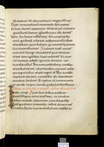 Keywords: MCC-61090 Evangelistarium (Ansfriduscodex) (131).tif Artwork nl Anonymous Neder-Rijn Anonymous St Gallen OSB nl De kern van de boekband van de Ansfriduscodex wordt gevormd door twee eikenhouten platten Het voorplat bestaat uit een verdiept middenveld omgeven door een brede rand Het is beslagen met dunne verguld zilveren platen In het middenveld bevindt zich een verguld zilveren kruis met een verhoogd ingezwenkt achtkantig middenstuk en breed uitlopende armen Het kruis is versierd met filigraan en vijf halfedelstenen te weten een ronde steen van amethist en kornalijn op het snijpunt van de beide kruisarmen een lichtblauwe kwarts respectievelijk een agaat op de brede uiteinden van de verticale kruisarmen en twee nog niet nader bestemde stenen op de horizontale kruisarmen Het filigraanwerk bestaat uit cirkelvormige uitwaaierende ranken met bolletjes aan de uiteinden en in het midden hier en daar kleine rozetjes In de vier velden tussen de kruisarmen zijn steeds twee stenen in een diagonale lijn geplaatst Van boven naar beneden en van links naar rechts betreft het bergkristal en amethist amethist en kwarts kwarts de andere steen is verloren gegaan kwarts en amethist De brede rand rond het verdiepte middenveld is eveneens rijkelijk versierd Op de hoeken zijn geƫmailleerde medaillons met de evangelistensymbolen aangebracht De banderol die de figuren dragen vermeldt de naam van de evangelist Van links boven naar rechts onder betreft het de adelaar van Johannes de gevleugelde mens van Mattheus de gevleugelde leeuw van Marcus en de gevleugelde stier van Lucas Tussen de grote medaillons verdeeld over de lange en korte zijden van de rand bevinden zich zes kleinere geƫmailleerde medaillons Hiervan vormen de bovenste twee op de lange zijden tezamen de kroning van Maria links de gekroonde Moeder Gods en rechts de zegenende Christus Eronder bevinden zich twee medaillons waarop met wierookvaten zwaaiende engelen Op de korte zijden tonen de twee medaillons een afbeelding van een opspringend hert Op de rand bevinden zich verder nog vier alsengemmen met gegraveerde primitieve figuurtjes en zestien halfedelstenen waaronder kwarts amethist bergkristal jaspis en een lagensteen niccolo genaamd Zeven van deze stenen zijn voorzien van een gegraveerde mythologische voorstelling Zie Snijder 1932 voor een gedetailleerde beschrijving van de stenen en voorstellingen De rode rechthoekige jaspis in de onderrand bevat een koefische inscriptie die betekent 'Stel uw vertrouwen in Allah en zoek contact met den heer der getrouwen' Alle sierstukken alsmede de armen en de acht segmenten van het middenstuk van het kruis zijn omlijst met gedraaid gouddraad De rug en het achterplat zijn overtrokken met van oorsprong rood fluweel met rozenmotief Op het achterplat zijn vijf gegraveerde zilveren stukken aangebracht te weten vier ronde medaillons op de hoeken en in het midden een amandelvormige plaquette met een afbeelding van een bisschop omgeven door een rand met palmettenmotief In de buitenste rand staat de volgende Latijnse tekst gegraveerd ORNATU LAPIDUM RUTILANS AUROQUE POLITUM / PRAESULIS ANSFRIDI MARTINO MUNUS OBIVI vert 'versierd met flonkerende edelstenen en schitterend goud ben ik het boek een geschenk van bisschop Ansfridus aan Martinus de Utrechtse Martinuskerk' between u'950' u'1000' u'1000' u'1499' nl perkament eikenhout zilver goud kwarts amethist glas kornalijn bergkristal niccolo jaspis agaat fluweel Size 34 0 26 5 cm nl Hoogte 34 0cm Breedte 26 5cm Diepte 10 0cm Institution Museum Catharijneconvent object history exhibition history credit line nl Foto Museum Catharijneconvent Utrecht foto HetFotoAtelier Peter Rothengatter accession number Object number 61090 Inventory number ABM h2 place of creation https //www catharijneconvent nl/adlib/61090/ View this work on the website of Museum Catharijneconvent Museum Catharijneconvent Cc-zero <gallery> File MCC-61090_Evangelistarium_Ansfriduscodex_ 319 tif File MCC-61090_Evangelistarium_Ansfriduscodex_ 157 tif File MCC-61090_Evangelistarium_Ansfriduscodex_ 103 tif File MCC-61090_Evangelistarium_Ansfriduscodex_ 279 tif File MCC-61090_Evangelistarium_Ansfriduscodex_ 250 tif File MCC-61090_Evangelistarium_Ansfriduscodex_ 104 tif File MCC-61090_Evangelistarium_Ansfriduscodex_ 96 tif File MCC-61090_Evangelistarium_Ansfriduscodex_ 276 tif File MCC-61090_Evangelistarium_Ansfriduscodex_ 114 tif File MCC-61090_Evangelistarium_Ansfriduscodex_ 233 tif File MCC-61090_Evangelistarium_Ansfriduscodex_ 195 tif File MCC-61090_Evangelistarium_Ansfriduscodex_ 261 tif File MCC-61090_Evangelistarium_Ansfriduscodex_ 73 tif File MCC-61090_Evangelistarium_Ansfriduscodex_ 105 tif File MCC-61090_Evangelistarium_Ansfriduscodex_ 40 tif File MCC-61090_Evangelistarium_Ansfriduscodex_ 231 tif File MCC-61090_Evangelistarium_Ansfriduscodex_ 48 tif File MCC-61090_Evangelistarium_Ansfriduscodex_ 43 tif File MCC-61090_Evangelistarium_Ansfriduscodex_ 50 tif File MCC-61090_Evangelistarium_Ansfriduscodex_ 1 tif File MCC-61090_Evangelistarium_Ansfriduscodex_ 198 tif File MCC-61090_Evangelistarium_Ansfriduscodex_ 144 tif File MCC-61090_Evangelistarium_Ansfriduscodex_ 293 tif File MCC-61090_Evangelistarium_Ansfriduscodex_ 109 tif File MCC-61090_Evangelistarium_Ansfriduscodex_ 318 tif File MCC-61090_Evangelistarium_Ansfriduscodex_ 254 tif File MCC-61090_Evangelistarium_Ansfriduscodex_ 301 tif File MCC-61090_Evangelistarium_Ansfriduscodex_ 107 tif File MCC-61090_Evangelistarium_Ansfriduscodex_ 284 tif File MCC-61090_Evangelistarium_Ansfriduscodex_ 251 tif File MCC-61090_Evangelistarium_Ansfriduscodex_ 121 tif File MCC-61090_Evangelistarium_Ansfriduscodex_ 172 tif File MCC-61090_Evangelistarium_Ansfriduscodex_ 213 tif File MCC-61090_Evangelistarium_Ansfriduscodex_ 264 tif File MCC-61090_Evangelistarium_Ansfriduscodex_ 118 tif File MCC-61090_Evangelistarium_Ansfriduscodex_ 90 tif File MCC-61090_Evangelistarium_Ansfriduscodex_ 287 tif File MCC-61090_Evangelistarium_Ansfriduscodex_ 260 tif File MCC-61090_Eva