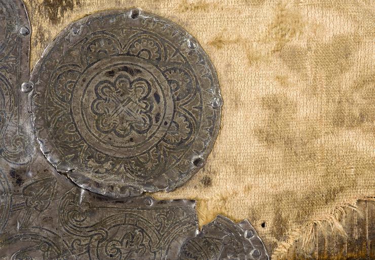Keywords: MCC-61090 Evangelistarium (Ansfriduscodex) (333).tif Artwork nl Anonymous Neder-Rijn Anonymous St Gallen OSB nl De kern van de boekband van de Ansfriduscodex wordt gevormd door twee eikenhouten platten Het voorplat bestaat uit een verdiept middenveld omgeven door een brede rand Het is beslagen met dunne verguld zilveren platen In het middenveld bevindt zich een verguld zilveren kruis met een verhoogd ingezwenkt achtkantig middenstuk en breed uitlopende armen Het kruis is versierd met filigraan en vijf halfedelstenen te weten een ronde steen van amethist en kornalijn op het snijpunt van de beide kruisarmen een lichtblauwe kwarts respectievelijk een agaat op de brede uiteinden van de verticale kruisarmen en twee nog niet nader bestemde stenen op de horizontale kruisarmen Het filigraanwerk bestaat uit cirkelvormige uitwaaierende ranken met bolletjes aan de uiteinden en in het midden hier en daar kleine rozetjes In de vier velden tussen de kruisarmen zijn steeds twee stenen in een diagonale lijn geplaatst Van boven naar beneden en van links naar rechts betreft het bergkristal en amethist amethist en kwarts kwarts de andere steen is verloren gegaan kwarts en amethist De brede rand rond het verdiepte middenveld is eveneens rijkelijk versierd Op de hoeken zijn geƫmailleerde medaillons met de evangelistensymbolen aangebracht De banderol die de figuren dragen vermeldt de naam van de evangelist Van links boven naar rechts onder betreft het de adelaar van Johannes de gevleugelde mens van Mattheus de gevleugelde leeuw van Marcus en de gevleugelde stier van Lucas Tussen de grote medaillons verdeeld over de lange en korte zijden van de rand bevinden zich zes kleinere geƫmailleerde medaillons Hiervan vormen de bovenste twee op de lange zijden tezamen de kroning van Maria links de gekroonde Moeder Gods en rechts de zegenende Christus Eronder bevinden zich twee medaillons waarop met wierookvaten zwaaiende engelen Op de korte zijden tonen de twee medaillons een afbeelding van een opspringend hert Op de rand bevinden zich verder nog vier alsengemmen met gegraveerde primitieve figuurtjes en zestien halfedelstenen waaronder kwarts amethist bergkristal jaspis en een lagensteen niccolo genaamd Zeven van deze stenen zijn voorzien van een gegraveerde mythologische voorstelling Zie Snijder 1932 voor een gedetailleerde beschrijving van de stenen en voorstellingen De rode rechthoekige jaspis in de onderrand bevat een koefische inscriptie die betekent 'Stel uw vertrouwen in Allah en zoek contact met den heer der getrouwen' Alle sierstukken alsmede de armen en de acht segmenten van het middenstuk van het kruis zijn omlijst met gedraaid gouddraad De rug en het achterplat zijn overtrokken met van oorsprong rood fluweel met rozenmotief Op het achterplat zijn vijf gegraveerde zilveren stukken aangebracht te weten vier ronde medaillons op de hoeken en in het midden een amandelvormige plaquette met een afbeelding van een bisschop omgeven door een rand met palmettenmotief In de buitenste rand staat de volgende Latijnse tekst gegraveerd ORNATU LAPIDUM RUTILANS AUROQUE POLITUM / PRAESULIS ANSFRIDI MARTINO MUNUS OBIVI vert 'versierd met flonkerende edelstenen en schitterend goud ben ik het boek een geschenk van bisschop Ansfridus aan Martinus de Utrechtse Martinuskerk' between u'950' u'1000' u'1000' u'1499' nl perkament eikenhout zilver goud kwarts amethist glas kornalijn bergkristal niccolo jaspis agaat fluweel Size 34 0 26 5 cm nl Hoogte 34 0cm Breedte 26 5cm Diepte 10 0cm Institution Museum Catharijneconvent object history exhibition history credit line nl Foto Museum Catharijneconvent Utrecht foto HetFotoAtelier Peter Rothengatter Reproduction title nl Detail achterzijde boekband graveerwerk medaillon accession number Object number 61090 Inventory number ABM h2 place of creation https //www catharijneconvent nl/adlib/61090/ View this work on the website of Museum Catharijneconvent Museum Catharijneconvent Cc-zero <gallery> File MCC-61090_Evangelistarium_Ansfriduscodex_ 319 tif File MCC-61090_Evangelistarium_Ansfriduscodex_ 157 tif File MCC-61090_Evangelistarium_Ansfriduscodex_ 103 tif File MCC-61090_Evangelistarium_Ansfriduscodex_ 279 tif File MCC-61090_Evangelistarium_Ansfriduscodex_ 250 tif File MCC-61090_Evangelistarium_Ansfriduscodex_ 104 tif File MCC-61090_Evangelistarium_Ansfriduscodex_ 96 tif File MCC-61090_Evangelistarium_Ansfriduscodex_ 276 tif File MCC-61090_Evangelistarium_Ansfriduscodex_ 114 tif File MCC-61090_Evangelistarium_Ansfriduscodex_ 233 tif File MCC-61090_Evangelistarium_Ansfriduscodex_ 195 tif File MCC-61090_Evangelistarium_Ansfriduscodex_ 261 tif File MCC-61090_Evangelistarium_Ansfriduscodex_ 73 tif File MCC-61090_Evangelistarium_Ansfriduscodex_ 105 tif File MCC-61090_Evangelistarium_Ansfriduscodex_ 40 tif File MCC-61090_Evangelistarium_Ansfriduscodex_ 231 tif File MCC-61090_Evangelistarium_Ansfriduscodex_ 48 tif File MCC-61090_Evangelistarium_Ansfriduscodex_ 43 tif File MCC-61090_Evangelistarium_Ansfriduscodex_ 50 tif File MCC-61090_Evangelistarium_Ansfriduscodex_ 1 tif File MCC-61090_Evangelistarium_Ansfriduscodex_ 198 tif File MCC-61090_Evangelistarium_Ansfriduscodex_ 144 tif File MCC-61090_Evangelistarium_Ansfriduscodex_ 293 tif File MCC-61090_Evangelistarium_Ansfriduscodex_ 109 tif File MCC-61090_Evangelistarium_Ansfriduscodex_ 318 tif File MCC-61090_Evangelistarium_Ansfriduscodex_ 254 tif File MCC-61090_Evangelistarium_Ansfriduscodex_ 301 tif File MCC-61090_Evangelistarium_Ansfriduscodex_ 107 tif File MCC-61090_Evangelistarium_Ansfriduscodex_ 284 tif File MCC-61090_Evangelistarium_Ansfriduscodex_ 251 tif File MCC-61090_Evangelistarium_Ansfriduscodex_ 121 tif File MCC-61090_Evangelistarium_Ansfriduscodex_ 172 tif File MCC-61090_Evangelistarium_Ansfriduscodex_ 213 tif File MCC-61090_Evangelistarium_Ansfriduscodex_ 264 tif File MCC-61090_Evangelistarium_Ansfriduscodex_ 118 tif File MCC-61090_Evangelistarium_Ansfriduscodex_ 90 tif File MCC-61090_Evangelistarium_Ansfriduscodex_ 287 tif F