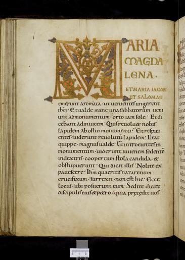 Keywords: MCC-61090 Evangelistarium (Ansfriduscodex) (146).tif Artwork nl Anonymous Neder-Rijn Anonymous St Gallen OSB nl De kern van de boekband van de Ansfriduscodex wordt gevormd door twee eikenhouten platten Het voorplat bestaat uit een verdiept middenveld omgeven door een brede rand Het is beslagen met dunne verguld zilveren platen In het middenveld bevindt zich een verguld zilveren kruis met een verhoogd ingezwenkt achtkantig middenstuk en breed uitlopende armen Het kruis is versierd met filigraan en vijf halfedelstenen te weten een ronde steen van amethist en kornalijn op het snijpunt van de beide kruisarmen een lichtblauwe kwarts respectievelijk een agaat op de brede uiteinden van de verticale kruisarmen en twee nog niet nader bestemde stenen op de horizontale kruisarmen Het filigraanwerk bestaat uit cirkelvormige uitwaaierende ranken met bolletjes aan de uiteinden en in het midden hier en daar kleine rozetjes In de vier velden tussen de kruisarmen zijn steeds twee stenen in een diagonale lijn geplaatst Van boven naar beneden en van links naar rechts betreft het bergkristal en amethist amethist en kwarts kwarts de andere steen is verloren gegaan kwarts en amethist De brede rand rond het verdiepte middenveld is eveneens rijkelijk versierd Op de hoeken zijn geƫmailleerde medaillons met de evangelistensymbolen aangebracht De banderol die de figuren dragen vermeldt de naam van de evangelist Van links boven naar rechts onder betreft het de adelaar van Johannes de gevleugelde mens van Mattheus de gevleugelde leeuw van Marcus en de gevleugelde stier van Lucas Tussen de grote medaillons verdeeld over de lange en korte zijden van de rand bevinden zich zes kleinere geƫmailleerde medaillons Hiervan vormen de bovenste twee op de lange zijden tezamen de kroning van Maria links de gekroonde Moeder Gods en rechts de zegenende Christus Eronder bevinden zich twee medaillons waarop met wierookvaten zwaaiende engelen Op de korte zijden tonen de twee medaillons een afbeelding van een opspringend hert Op de rand bevinden zich verder nog vier alsengemmen met gegraveerde primitieve figuurtjes en zestien halfedelstenen waaronder kwarts amethist bergkristal jaspis en een lagensteen niccolo genaamd Zeven van deze stenen zijn voorzien van een gegraveerde mythologische voorstelling Zie Snijder 1932 voor een gedetailleerde beschrijving van de stenen en voorstellingen De rode rechthoekige jaspis in de onderrand bevat een koefische inscriptie die betekent 'Stel uw vertrouwen in Allah en zoek contact met den heer der getrouwen' Alle sierstukken alsmede de armen en de acht segmenten van het middenstuk van het kruis zijn omlijst met gedraaid gouddraad De rug en het achterplat zijn overtrokken met van oorsprong rood fluweel met rozenmotief Op het achterplat zijn vijf gegraveerde zilveren stukken aangebracht te weten vier ronde medaillons op de hoeken en in het midden een amandelvormige plaquette met een afbeelding van een bisschop omgeven door een rand met palmettenmotief In de buitenste rand staat de volgende Latijnse tekst gegraveerd ORNATU LAPIDUM RUTILANS AUROQUE POLITUM / PRAESULIS ANSFRIDI MARTINO MUNUS OBIVI vert 'versierd met flonkerende edelstenen en schitterend goud ben ik het boek een geschenk van bisschop Ansfridus aan Martinus de Utrechtse Martinuskerk' between u'950' u'1000' u'1000' u'1499' nl perkament eikenhout zilver goud kwarts amethist glas kornalijn bergkristal niccolo jaspis agaat fluweel Size 34 0 26 5 cm nl Hoogte 34 0cm Breedte 26 5cm Diepte 10 0cm Institution Museum Catharijneconvent object history exhibition history credit line nl Foto Museum Catharijneconvent Utrecht foto HetFotoAtelier Peter Rothengatter accession number Object number 61090 Inventory number ABM h2 place of creation https //www catharijneconvent nl/adlib/61090/ View this work on the website of Museum Catharijneconvent Museum Catharijneconvent Cc-zero <gallery> File MCC-61090_Evangelistarium_Ansfriduscodex_ 319 tif File MCC-61090_Evangelistarium_Ansfriduscodex_ 157 tif File MCC-61090_Evangelistarium_Ansfriduscodex_ 103 tif File MCC-61090_Evangelistarium_Ansfriduscodex_ 279 tif File MCC-61090_Evangelistarium_Ansfriduscodex_ 250 tif File MCC-61090_Evangelistarium_Ansfriduscodex_ 104 tif File MCC-61090_Evangelistarium_Ansfriduscodex_ 96 tif File MCC-61090_Evangelistarium_Ansfriduscodex_ 276 tif File MCC-61090_Evangelistarium_Ansfriduscodex_ 114 tif File MCC-61090_Evangelistarium_Ansfriduscodex_ 233 tif File MCC-61090_Evangelistarium_Ansfriduscodex_ 195 tif File MCC-61090_Evangelistarium_Ansfriduscodex_ 261 tif File MCC-61090_Evangelistarium_Ansfriduscodex_ 73 tif File MCC-61090_Evangelistarium_Ansfriduscodex_ 105 tif File MCC-61090_Evangelistarium_Ansfriduscodex_ 40 tif File MCC-61090_Evangelistarium_Ansfriduscodex_ 231 tif File MCC-61090_Evangelistarium_Ansfriduscodex_ 48 tif File MCC-61090_Evangelistarium_Ansfriduscodex_ 43 tif File MCC-61090_Evangelistarium_Ansfriduscodex_ 50 tif File MCC-61090_Evangelistarium_Ansfriduscodex_ 1 tif File MCC-61090_Evangelistarium_Ansfriduscodex_ 198 tif File MCC-61090_Evangelistarium_Ansfriduscodex_ 144 tif File MCC-61090_Evangelistarium_Ansfriduscodex_ 293 tif File MCC-61090_Evangelistarium_Ansfriduscodex_ 109 tif File MCC-61090_Evangelistarium_Ansfriduscodex_ 318 tif File MCC-61090_Evangelistarium_Ansfriduscodex_ 254 tif File MCC-61090_Evangelistarium_Ansfriduscodex_ 301 tif File MCC-61090_Evangelistarium_Ansfriduscodex_ 107 tif File MCC-61090_Evangelistarium_Ansfriduscodex_ 284 tif File MCC-61090_Evangelistarium_Ansfriduscodex_ 251 tif File MCC-61090_Evangelistarium_Ansfriduscodex_ 121 tif File MCC-61090_Evangelistarium_Ansfriduscodex_ 172 tif File MCC-61090_Evangelistarium_Ansfriduscodex_ 213 tif File MCC-61090_Evangelistarium_Ansfriduscodex_ 264 tif File MCC-61090_Evangelistarium_Ansfriduscodex_ 118 tif File MCC-61090_Evangelistarium_Ansfriduscodex_ 90 tif File MCC-61090_Evangelistarium_Ansfriduscodex_ 287 tif File MCC-61090_Evangelistarium_Ansfriduscodex_ 260 tif File MCC-61090_Eva