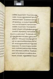 Keywords: MCC-68515 Evangelistarium (Bernulphuscodex) (169).jpg Artwork nl Anonymous Zuid-Duitsland Reichenau OSB nl De kern van de boekband van de Bernulphuscodex wordt gevormd door twee eikenhouten platten De rug en het achterplat zijn overtrokken met zeemleer Het voorplat bestaat uit een enigszins verdiept rechthoekig middenveld omgeven door een brede rand In het middenveld bevindt zich een verguld zilveren filigraankruis met een verhoogd ingezwenkt achtkantig middenstuk en breed uitlopende armen Het filigraanwerk bestaat uit cirkelvormige uitwaaierende ranken met bolletjes aan de uiteinden en in het midden hier en daar kleine rozetjes Op het snijpunt van beide kruisarmen bevindt zich een ovale zwartblauw en grijs gekleurde onyx in de bovenarm een klassiek gesneden vrouwenkop van chalcedoon op de rechterarm een stuk donkerrood glas en beneden een bruin gestreepte agaat De bekleding van de linker kruisarm ontbreekt De lager gelegen velden tussen de kruisarmen zijn bekleed met dunne gouden platen Langs de randen hiervan is een parelrandje gestanst In het midden van de velden bevindt zich een medaillon met email-cloisonné De bovenste twee zijn voorzien van een diagonaal patroon met witte getrapte vierkantjes met rode stip tegen een donkerblauwe achtergrond Op de onderste twee is een stervormig respectievelijk concentrisch patroon aangebracht De aldaar toegepaste kleuren zijn translucide groen opaak wit geel en bruinpaars In de buitenste hoeken van de lager gelegen velden zijn ronde stenen in een vierkante zetting aangebracht Hiervan is slechts de opaal in de rechter bovenhoek bewaard gebleven In de overige hoeken is alleen nog de vierkante uitsparing te zien De brede rand is overtrokken met verguld zilveren stroken met grote rozetten die van elkaar gescheiden zijn door vier kleine stippelroosjes tussen twee evenwijdig lopende parelrandjes Aan de korte zijden van het voorplat ontbreekt de rozettenrand; slechts de spijkers waarmee ze waren vastgemaakt zijn nog te zien Aan de lange zijde ontbreekt een stuk uit de rand en wel links onder het midden Verdeeld over de nog aanwezige rozetten zijn vier alsengemmen en twee zilveren medaillons aangebracht Laatstgenoemde zijn versierd met een gezicht en bladwerk Vier medaillons met de evangelistensymbolen zijn op de hoeken van de brede rand aangebracht van links boven naar rechts onder betreft het de adelaar van Johannes de engel van Mattheus de gevleugelde os van Lucas en de gevleugelde leeuw van Marcus De banderol die de figuren dragen vermeldt de naam van de betreffende evangelist De naam van Marcus staat in spiegelbeeld Het woord Lucas is over andere letters gekrast De armen van het kruis de acht segmenten van het middenstuk alsmede de sierstukken zijn omlijst met een fijn geparelde gouden filigraandraad Techniek nog in te vullen volgens Korteweg zijn de medaillons met symbolen van Marcus en Lucas uit een graveerplaat gezaagd; rozetten in rand gestanst De sierlijst met rozetten is met behulp van kleine spijkertjes op de houten rand bevestigd Staat nog in te vullen Volgens Korteweg 1979 waren de medaillons met de symbolen van Johannes en Mattheus oorspronkelijk geëmailleerd De velden vertonen nog sporen van gekleurd email Volgens Steenbock 1965 waren het juist de medaillons met Lucas en Marcus Volgens Korteweg 1979 is het verguldsel van de stroken met rozetten enigszins afgesleten Onder de linkerzijde van het metaalwerk van het voorplat bevindt zich rode zijde; aan de smalle zijden van het voorplat ontbreken de rozettenranden slechts de spijkers waarmee ze waren vastgemaakt zijn nog te zien Aan de lange zijde links onder het midden ontbreekt een stuk uit de rand Van het chalcedonen vrouwenkopje ontbreekt de neus en is de kin beschadigd between u'1040' u'1200' u'1050' u'1499' nl perkament eikenhout zilver goud chalcedoon onyx glas agaat opaal Size 31 5 24 0 cm nl Hoogte 31 5cm Breedte 24 0cm Diepte 9 8cm Institution Museum Catharijneconvent object history exhibition history credit line nl Foto Museum Catharijneconvent Utrecht foto HetFotoAtelier Peter Rothengatter accession number Object number 68515 Inventory number ABM h3 place of creation https //www catharijneconvent nl/adlib/68515/ View this work on the website of Museum Catharijneconvent Museum Catharijneconvent Cc-zero <gallery> File MCC-68515_Evangelistarium_Bernulphuscodex_ 353 jpg File MCC-68515_Evangelistarium_Bernulphuscodex_ 412 jpg File MCC-68515_Evangelistarium_Bernulphuscodex_ 160 jpg File MCC-68515_Evangelistarium_Bernulphuscodex_ 6 jpg File MCC-68515_Evangelistarium_Bernulphuscodex_ 393 jpg File MCC-68515_Evangelistarium_Bernulphuscodex_ 89 jpg File MCC-68515_Evangelistarium_Bernulphuscodex_ 270 jpg File MCC-68515_Evangelistarium_Bernulphuscodex_ 425 jpg File MCC-68515_Evangelistarium_Bernulphuscodex_ 104 jpg File MCC-68515_Evangelistarium_Bernulphuscodex_ 291 jpg File MCC-68515_Evangelistarium_Bernulphuscodex_ 398 jpg File MCC-68515_Evangelistarium_Bernulphuscodex_ 339 jpg File MCC-68515_Evangelistarium_Bernulphuscodex_ 65 jpg File MCC-68515_Evangelistarium_Bernulphuscodex_ 403 jpg File MCC-68515_Evangelistarium_Bernulphuscodex_ 311 jpg File MCC-68515_Evangelistarium_Bernulphuscodex_ 159 jpg File MCC-68515_Evangelistarium_Bernulphuscodex_ 347 jpg File MCC-68515_Evangelistarium_Bernulphuscodex_ 453 jpg File MCC-68515_Evangelistarium_Bernulphuscodex_ 289 jpg File MCC-68515_Evangelistarium_Bernulphuscodex_ 273 jpg File MCC-68515_Evangelistarium_Bernulphuscodex_ 286 jpg File MCC-68515_Evangelistarium_Bernulphuscodex_ 236 jpg File MCC-68515_Evangelistarium_Bernulphuscodex_ 447 jpg File MCC-68515_Evangelistarium_Bernulphuscodex_ 227 jpg File MCC-68515_Evangelistarium_Bernulphuscodex_ 110 jpg File MCC-68515_Evangelistarium_Bernulphuscodex_ 139 jpg File MCC-68515_Evangelistarium_Bernulphuscodex_ 276 jpg File MCC-68515_Evangelistarium_Bernulphuscodex_ 10 jpg File MCC-68515_Evangelistarium_Bernulphuscodex_ 325 jpg File MCC-68515_Evangelistarium_Bernulphuscodex_ 154 jpg File MCC-68515_Ev