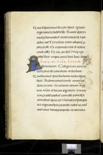 Keywords: MCC-68515 Evangelistarium (Bernulphuscodex) (176).jpg Artwork nl Anonymous Zuid-Duitsland Reichenau OSB nl De kern van de boekband van de Bernulphuscodex wordt gevormd door twee eikenhouten platten De rug en het achterplat zijn overtrokken met zeemleer Het voorplat bestaat uit een enigszins verdiept rechthoekig middenveld omgeven door een brede rand In het middenveld bevindt zich een verguld zilveren filigraankruis met een verhoogd ingezwenkt achtkantig middenstuk en breed uitlopende armen Het filigraanwerk bestaat uit cirkelvormige uitwaaierende ranken met bolletjes aan de uiteinden en in het midden hier en daar kleine rozetjes Op het snijpunt van beide kruisarmen bevindt zich een ovale zwartblauw en grijs gekleurde onyx in de bovenarm een klassiek gesneden vrouwenkop van chalcedoon op de rechterarm een stuk donkerrood glas en beneden een bruin gestreepte agaat De bekleding van de linker kruisarm ontbreekt De lager gelegen velden tussen de kruisarmen zijn bekleed met dunne gouden platen Langs de randen hiervan is een parelrandje gestanst In het midden van de velden bevindt zich een medaillon met email-cloisonné De bovenste twee zijn voorzien van een diagonaal patroon met witte getrapte vierkantjes met rode stip tegen een donkerblauwe achtergrond Op de onderste twee is een stervormig respectievelijk concentrisch patroon aangebracht De aldaar toegepaste kleuren zijn translucide groen opaak wit geel en bruinpaars In de buitenste hoeken van de lager gelegen velden zijn ronde stenen in een vierkante zetting aangebracht Hiervan is slechts de opaal in de rechter bovenhoek bewaard gebleven In de overige hoeken is alleen nog de vierkante uitsparing te zien De brede rand is overtrokken met verguld zilveren stroken met grote rozetten die van elkaar gescheiden zijn door vier kleine stippelroosjes tussen twee evenwijdig lopende parelrandjes Aan de korte zijden van het voorplat ontbreekt de rozettenrand; slechts de spijkers waarmee ze waren vastgemaakt zijn nog te zien Aan de lange zijde ontbreekt een stuk uit de rand en wel links onder het midden Verdeeld over de nog aanwezige rozetten zijn vier alsengemmen en twee zilveren medaillons aangebracht Laatstgenoemde zijn versierd met een gezicht en bladwerk Vier medaillons met de evangelistensymbolen zijn op de hoeken van de brede rand aangebracht van links boven naar rechts onder betreft het de adelaar van Johannes de engel van Mattheus de gevleugelde os van Lucas en de gevleugelde leeuw van Marcus De banderol die de figuren dragen vermeldt de naam van de betreffende evangelist De naam van Marcus staat in spiegelbeeld Het woord Lucas is over andere letters gekrast De armen van het kruis de acht segmenten van het middenstuk alsmede de sierstukken zijn omlijst met een fijn geparelde gouden filigraandraad Techniek nog in te vullen volgens Korteweg zijn de medaillons met symbolen van Marcus en Lucas uit een graveerplaat gezaagd; rozetten in rand gestanst De sierlijst met rozetten is met behulp van kleine spijkertjes op de houten rand bevestigd Staat nog in te vullen Volgens Korteweg 1979 waren de medaillons met de symbolen van Johannes en Mattheus oorspronkelijk geëmailleerd De velden vertonen nog sporen van gekleurd email Volgens Steenbock 1965 waren het juist de medaillons met Lucas en Marcus Volgens Korteweg 1979 is het verguldsel van de stroken met rozetten enigszins afgesleten Onder de linkerzijde van het metaalwerk van het voorplat bevindt zich rode zijde; aan de smalle zijden van het voorplat ontbreken de rozettenranden slechts de spijkers waarmee ze waren vastgemaakt zijn nog te zien Aan de lange zijde links onder het midden ontbreekt een stuk uit de rand Van het chalcedonen vrouwenkopje ontbreekt de neus en is de kin beschadigd between u'1040' u'1200' u'1050' u'1499' nl perkament eikenhout zilver goud chalcedoon onyx glas agaat opaal Size 31 5 24 0 cm nl Hoogte 31 5cm Breedte 24 0cm Diepte 9 8cm Institution Museum Catharijneconvent object history exhibition history credit line nl Foto Museum Catharijneconvent Utrecht foto HetFotoAtelier Peter Rothengatter accession number Object number 68515 Inventory number ABM h3 place of creation https //www catharijneconvent nl/adlib/68515/ View this work on the website of Museum Catharijneconvent Museum Catharijneconvent Cc-zero <gallery> File MCC-68515_Evangelistarium_Bernulphuscodex_ 353 jpg File MCC-68515_Evangelistarium_Bernulphuscodex_ 412 jpg File MCC-68515_Evangelistarium_Bernulphuscodex_ 160 jpg File MCC-68515_Evangelistarium_Bernulphuscodex_ 6 jpg File MCC-68515_Evangelistarium_Bernulphuscodex_ 393 jpg File MCC-68515_Evangelistarium_Bernulphuscodex_ 89 jpg File MCC-68515_Evangelistarium_Bernulphuscodex_ 270 jpg File MCC-68515_Evangelistarium_Bernulphuscodex_ 425 jpg File MCC-68515_Evangelistarium_Bernulphuscodex_ 104 jpg File MCC-68515_Evangelistarium_Bernulphuscodex_ 291 jpg File MCC-68515_Evangelistarium_Bernulphuscodex_ 398 jpg File MCC-68515_Evangelistarium_Bernulphuscodex_ 339 jpg File MCC-68515_Evangelistarium_Bernulphuscodex_ 65 jpg File MCC-68515_Evangelistarium_Bernulphuscodex_ 403 jpg File MCC-68515_Evangelistarium_Bernulphuscodex_ 311 jpg File MCC-68515_Evangelistarium_Bernulphuscodex_ 159 jpg File MCC-68515_Evangelistarium_Bernulphuscodex_ 347 jpg File MCC-68515_Evangelistarium_Bernulphuscodex_ 453 jpg File MCC-68515_Evangelistarium_Bernulphuscodex_ 289 jpg File MCC-68515_Evangelistarium_Bernulphuscodex_ 273 jpg File MCC-68515_Evangelistarium_Bernulphuscodex_ 286 jpg File MCC-68515_Evangelistarium_Bernulphuscodex_ 236 jpg File MCC-68515_Evangelistarium_Bernulphuscodex_ 447 jpg File MCC-68515_Evangelistarium_Bernulphuscodex_ 227 jpg File MCC-68515_Evangelistarium_Bernulphuscodex_ 110 jpg File MCC-68515_Evangelistarium_Bernulphuscodex_ 139 jpg File MCC-68515_Evangelistarium_Bernulphuscodex_ 276 jpg File MCC-68515_Evangelistarium_Bernulphuscodex_ 10 jpg File MCC-68515_Evangelistarium_Bernulphuscodex_ 325 jpg File MCC-68515_Evangelistarium_Bernulphuscodex_ 154 jpg File MCC-68515_Ev