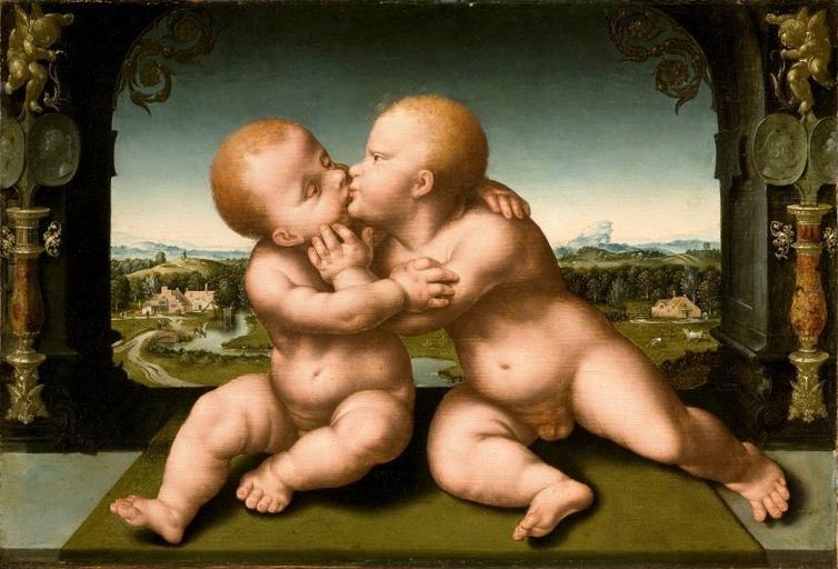 Keywords: MCC-72404 Christus en Johannes de Doper als kinderen (1).jpg Artwork Creator Joos van Cleve De twee kussende babies zijn Jezus en zijn zes maanden oudere neefje Johannes De ontmoeting is niet in de bijbel beschreven De gebeurtenis is gebaseerd op apocriefe geschriften en middeleeuwse legenden waarin wordt verteld over de vlucht naar Egypte en de terugkeer van de Heilige Familie De medaillons verwijzen naar verhalen uit de klassieke oudheid De medaillons links met Antigone en Oedipus verbeelden de liefde tussen ouders en kind De medaillons aan de rechterzijde met Dido en Aeneas zijn symbool voor de liefde tussen man en vrouw De twee kussende kinderen verbinden bijbelse en humanistische opvattingen over het gezin Hierdoor was de compositie ook geliefd bij verzamelaars met interesse in mythologie ~ 1530 Ucfirst Oil on panel cm 39 58 Institution Museum Catharijneconvent place of discovery object history by 1821 Victor de Rainer Brussels ProvenanceEvent 1821 purchase William I of the Netherlands 1772-1843 LangSwitch die the le het Mauritshuis The Hague 348 ProvenanceEvent 2011 loan LangSwitch das the el au het ~ Museum Catharijneconcent Utrecht RMCC s337 LangSwitch die the le het ~ Mauritshuis The Hague exhibition history credit line ANTIGONA FI S / OEDIPPVS FILIVS REG TE top left la AENEAS TROIAN FILI ANCH / DID C CARTAG top right la accession number RMCC s337 place of creation Southern Netherlands https //www catharijneconvent nl https //www catharijneconvent nl Home https //www catharijneconvent nl/adlib/72404 Info https //www catharijneconvent nl/media/adlib/RMCC 20s00337_01 jpg Pic MCC-72404 Christus en Johannes de Doper als kinderen 2 jpg https //www catharijneconvent nl/adlib/72404/ Museum Catharijneconvent i18n/as workshop of Joos van Cleve Christus en Johannes de Doper als kinderen ~ 1530 christus-en-johannes-de-doper-als-kinderen-348 Name workshop of Joos van Cleve LangSwitch Christ and John the Baptist as Children Christus en Johannes de Doper als kinderen ~ 1530 28174 Name workshop of Joos van Cleve Joos van Cleve Jan Gossart Christus en Johannes de Doper als kinderen 2quarter Other date century 16 1625-1649 20360882 Joos van Cleve Christus und Johannes der Täufer als Kinder Other date ~ 1530 Museum Catharijneconvent Cc-zero Paintings in the Museum Catharijneconvent Cleve Joos Van Workshop Religious paintings by Joos van Cleve Workshop 1530 |
