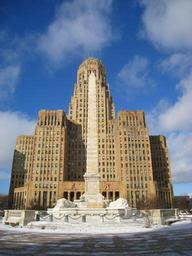 Keywords: McKinley Monument, Buffalo, NY - IMG 3695.JPG McKinley Monument in Niagara Square Buffalo New York Architects Carrère and Hastings; sculptor Alexander Phimister Proctor Dedicated September 5 1907 Buffalo City Hall is in the background own 2010-01-20 Daderot Public domain McKinley Monument Buffalo City Hall