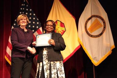 Keywords: imcom installation management command installationmanagementcommand fort sam houston fortsamhouston line of effort 1 lineofeffort1 professional development professionaldevelopment professional development program professionaldevelopmentprogram awards presentation awardspresentation employee recognition employeerecognition employees indoor The IMCOM G9 Family and Morale, Welfare and Recreation directorate leaders are committed to helping employees grow in their careers, in support of the command's people first priority. During this professional development program event, director Stephanie Hoehne presented awards to employees, May 3, 2016, at the Fort Sam Houston Theatre on Joint Base San Antonio, Texas. (U.S. Army photo by Jessica Ryan.) The IMCOM G9 Family and Morale, Welfare and Recreation directorate leaders are committed to helping employees grow in their careers, in support of the command's people first priority. During this professional development program event, director Stephanie Hoehne presented awards to employees, May 3, 2016, at the Fort Sam Houston Theatre on Joint Base San Antonio, Texas. (U.S. Army photo by Jessica Ryan.) |