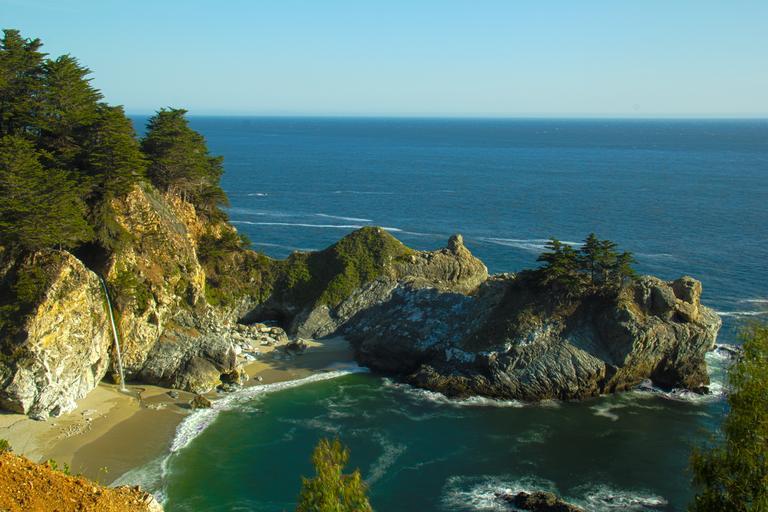 Keywords: mcway falls waterfall julia pfeiffer burns state park ocean rock nature water landscape mountain sea travel green sky blue beach park scenic stone outdoors