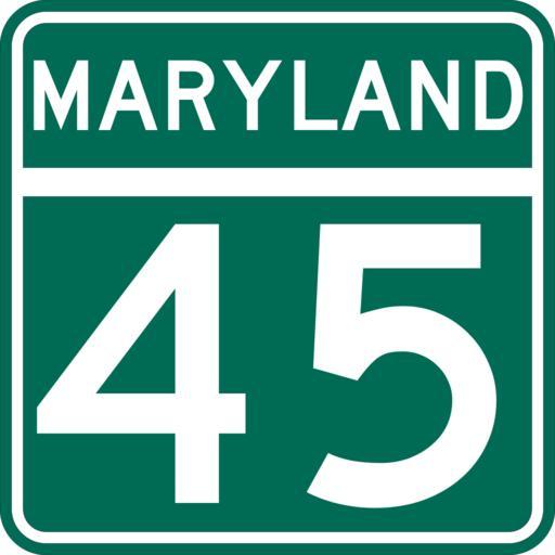 | Keywords: MD Route 45 green.svg A green Maryland Route 45 route marker as used in some places on Maryland Route 45 Bypass http //www mdroads com/routes/040-059 html md045 which is signed by Baltimore County Since this green shield is only used on the bypass route this marker should be used in conjunction with the green bypass plate 2006-10-20 own assumed Jeff02 45 number |