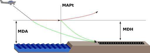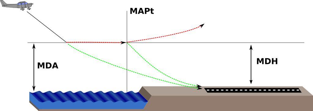 Keywords: MDA and MDH.svg Instrument approach MDA minimum descent altitude MDH minimum descent height MAPt missed approach point green line runway in sight †’ continue descent below MDA/H red line runway not in sight before reaching MAPt †’ hold altitude when reaching MAPt †’ missed approach/go around Mindestsinkflughöhe MDA minimum descent altitude MDH minimum descent height MAPt missed approach point Fehlanflugpunkt grüne Linie Landebahn/-befeuerung in Sicht †’ weiter sinken rote Linie Landebahn/-befeuerung noch nicht in Sicht MAPt noch nicht erreicht †’ Höhe halten wenn MAPt erreicht und Landebahn/-befeuerung noch nicht in Sicht †’ missed approach/Durchstarten own incorporating C 172 line drawing svg 2010-04-10 C 172 line drawing svg Werneuchen everything else El Grafo <span class signature-talk >talk</span> Decision altitude and decision height svg Decision altitude and decision height CC-0 Air navigation diagrams Aircraft altitude diagrams Files by User El Grafo Landings in aviation ILS |