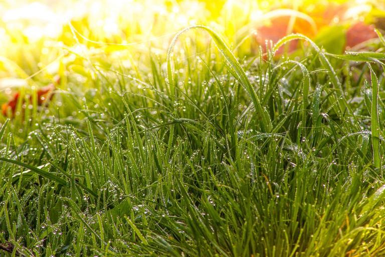 Keywords: meadow grass fog dew nature green blade of grass morgentau rush back light moisture wet yellow red orange dewdrop drip dewdrop grass halm drops of morning dew close