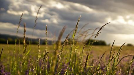 Keywords: meadow landscape spring plant grass idyll clouds halme green nature close