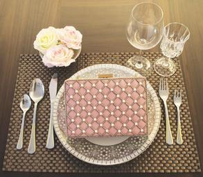 Keywords: meal leather embroidered clutch
