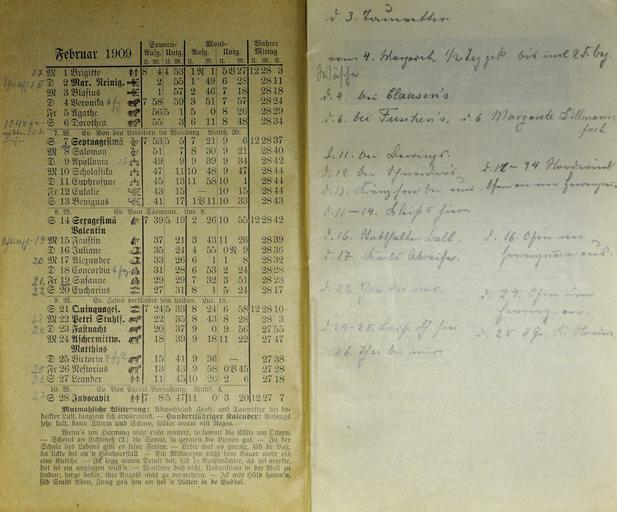 Keywords: Mecklenburgischer Kalender 1909 005.jpg Großherzoglich Mecklenburg-Schwerinscher und Mecklenburg Strelitzscher Kalender für 1909 Hinstorff'sche Verlagsanstalt Wismar own photo of item in own collection 1909 anonymous PD-old-100 Mecklenburgischer Kalender 1909 Photos by User AndreasPraefcke |