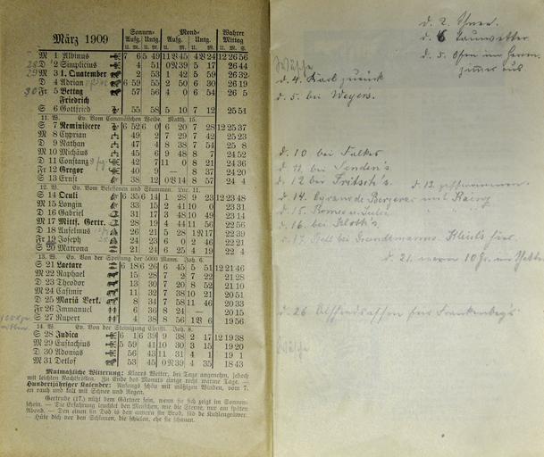 Keywords: Mecklenburgischer Kalender 1909 007.jpg Großherzoglich Mecklenburg-Schwerinscher und Mecklenburg Strelitzscher Kalender für 1909 Hinstorff'sche Verlagsanstalt Wismar own photo of item in own collection 1909 anonymous PD-old-100 Mecklenburgischer Kalender 1909 Photos by User AndreasPraefcke |