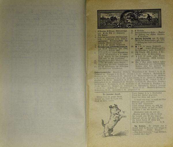 Keywords: Mecklenburgischer Kalender 1909 010.jpg Großherzoglich Mecklenburg-Schwerinscher und Mecklenburg Strelitzscher Kalender für 1909 Hinstorff'sche Verlagsanstalt Wismar own photo of item in own collection 1909 anonymous PD-old-100 Mecklenburgischer Kalender 1909 Photos by User AndreasPraefcke |