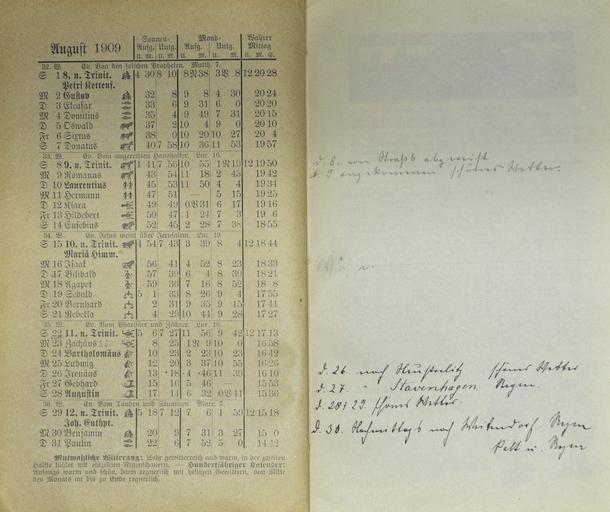 Keywords: Mecklenburgischer Kalender 1909 017.jpg Großherzoglich Mecklenburg-Schwerinscher und Mecklenburg Strelitzscher Kalender für 1909 Hinstorff'sche Verlagsanstalt Wismar own photo of item in own collection 1909 anonymous PD-old-100 Mecklenburgischer Kalender 1909 Photos by User AndreasPraefcke |