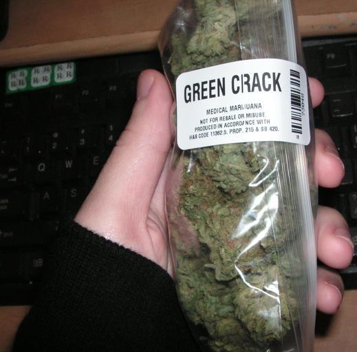 Keywords: Medical Marijuana.jpg en An ounce of Green Crack bought from a dispensary in California California Coaster420 2008-01-25 It's all yours Cannabis sativa Medical cannabis Green Crack Cannabis in the United States