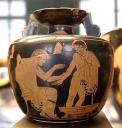 | Keywords: Medicine aryballos Louvre CA1989-2183.jpg Clinic Painter eponymous vase Physician treating a patient Red-figure Attic aryballos ca 480 “470 BC Médecin soignant un patient Aryballe attique à figures rouges v 480-470 av J -C H 8 8 cm 3 ¼ in Diam 8 6 cm 3 ¼ in Museum Louvre Department of Greek Etruscan and Roman Antiquities Sully 1st floor Campana Gallery room 43 Beazley Attic Red-figured Vase-Painters 1963 813 96 object history credit line Gift Peytel 1914 accession number CA 1989-CA 2183 User Bibi Saint-Pol own work 2007-07-21 other versions <gallery> Image Medicine aryballos Louvre CA1989-2183 n2 jpg </gallery> Ancient Greek pottery aryballoi Clinic Painter Greek antiquities in the Louvre - Room 43 480s BC 470s BC Medicine in ancient Greece |