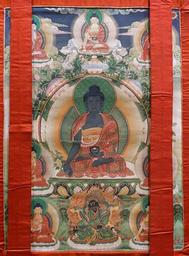 Keywords: Medicine Buddha, 1644-1911 AD, thangka - Sichuan University Museum - Chengdu, China - DSC06197.jpg en Exhibit in the Sichuan University Museum 四 大学博物馆 - Chengdu Sichuan China Photography was permitted in the museum without restriction This work is old enough so that it is in the public domain 2015-09-26 02 04 45 own Daderot other versions PD-old-100 cc-zero Thangka in the Sichuan University Museum Bhaisajyaguru |