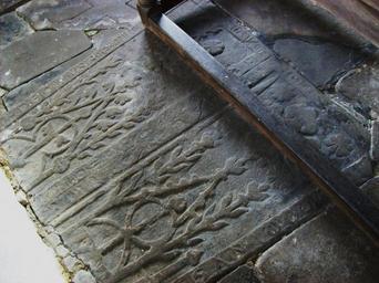 Keywords: Medieval gravestones, Stydd.jpg en 14th c gravestones of Sir Adam and Lady Alicia de Clitheroe Stydd Sir Adam was harpist to the royal court 2011-11-12 own Poliphilo cc-zero 14th-century gravestones St Saviour's Church Stydd Late medieval way of life 12th-15th centuries Uploaded with UploadWizard |