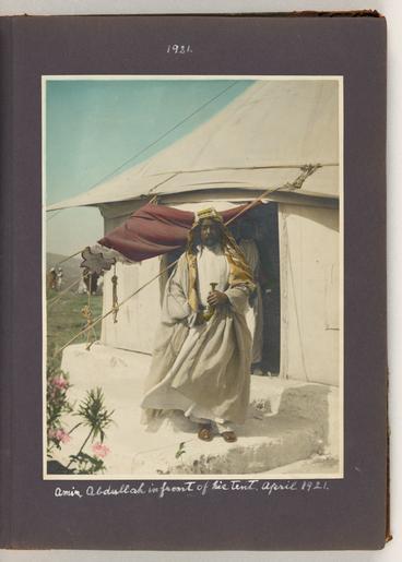 | Keywords: Meetings of British, Arab, and Bedouin officials in Amman, Jordan, April 1921 - File 01.tif en Photographs show meetings between Arab Bedouin and British officials around April 17-27 1921 at Amir Abdullah ibn Hussein's camp at Amman Jordan During these meetings British High Commissioner Herbert Samuel proclaimed Amir Abdullah as the ruler of Transjordan under British protection Among the persons depicted are Amir Abdullah John D Whiting possibly Sheik Sultan of the Belka Sultan ibn 'Ali id Diab ul 'Adwan Amir Shaker bin Zeid future Regent of Transjordan Bedouin chief Auda Abu Tayi Sheik Majid Pasha el Adwan Herbert Samuel British civil administrator Wyndham Deedes British diplomat Albert Abramson T E Lawrence Lawrence of Arabia and possibly Iraq civil administrator Gertrude Bell Also shown are horse racing an airplane landing at Abdullah's camp Circassian leaders Abudullah's bodyguard on camels and Herbert Samuel reading his proclamation of Abdullah as leader of Transjordan Reproduction Number LC-DIG-ppmsca-15304 digital files of original photos LC-DIG-ppmsca-15305 digital files of album pages Rights Advisory No known restrictions on publication Access Advisory For reference access please use the digital images in the online catalog to preserve the fragile original items Notes Photographs were created by the photographers of the American Colony Photo Department located in Jerusalem Founded in the late 1890s by Elijah Meyers the photo agency was headed during its heyday ca 1903-1933 by Lewis Larsson whose staff photographers included Erik Lind Lars Lind Furman Baldwin and G Eric Matson It transitioned into the Matson Photo Service around 1940 with photography by Matson Hanna Safieh Joseph H Giries and others John D Whiting contributed periodically to the work of both agencies The images in this album were probably taken by Lewis Larsson and/or Eric Matson For more information see http //hdl loc gov/loc pnp/pp matpc and http //www loc gov/rr/print/coll/629_whiting html Some caption information for these photographs based on information from matching negatives in the G Eric and Edith Matson Photograph Collection LC-M32-1942 LC-M32-1952 LC-M32-1951 LC-M32-1954 LC-M32-1956 M32-1957 and LC-M32-50280-x Album unpaginated album page numbers supplied by Library staff Pages 1-2 and verso of each page are blank One unattached photograph was found with the album and is stored with it Photograph is a portrait of a Jordanian man in traditional dress Blind stamp Hagop Berberian Amman Stamped on verso Copyright reserved By appointment to H M the King photographers Hagop Berberian Son More information about the events and people depicted in the album are available in the John D Whiting Supplementary Archive Box 1 LOT title devised by Library staff John D Whiting's diaries correspondence and other materials are located in the Library of Congress Manuscript Division Papers of John D Whiting Forms part of Visual materials from the papers of John D Whiting Library of Congress Transfer; Manuscript Division; 2006; DLC/PP-2006 051 29 Subjects Samuel Herbert Louis Samuel --Viscount --1870-1963 Lawrence T E -- Thomas Edward --1888-1935 Abdullah --King of Jordan --1882-1951 Deedes Wyndham Henry --Sir --1883-1956 Shākir ibn Zayd --Prince son of Zayd ibn Fawwāz Amir of Ṭāʾif --1885-1934 Bell Gertrude Lowthian --1868-1926 Jordan--History--1919-1946 American Colony Jerusalem --People--1920-1930 British--Jordan--Amman--1920-1930 Arabs--Jordan--Amman--1920-1930 Bedouins--Jordan--Amman--1920-1930 Circassians--Jordan--Amman--1920-1930 Tribal chiefs--Jordan--Amman--1920-1930 Meetings--Jordan--Amman--1920-1930 Camps--Jordan--Amman--1920-1930 Government officials--Jordan--Amman--1920-1930 Biplanes--Jordan--Amman--1920-1930 Proclamations--Jordan--Amman--1920-1930 April 17-27 1921 http //www loc gov/pictures/item/mpc2010001545/PP/resource/ Whiting John D John David 1882-1951 photographer Larsson Lewis photographer Matson G Eric Gästgifvar Eric 1888-1977 photographer other versions Wikimedia Levant - GLAM PD-Jordan 1921 Herbert Samuel and Amir Abdullah meetings |