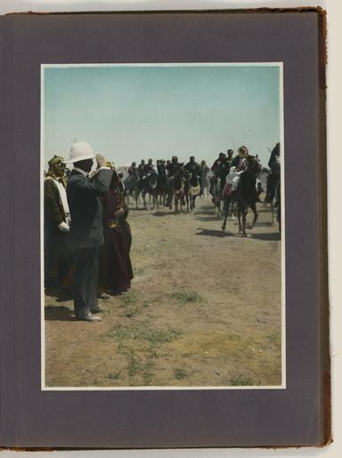 | Keywords: Meetings of British, Arab, and Bedouin officials in Amman, Jordan, April 1921 - File 25.tif en Photographs show meetings between Arab Bedouin and British officials around April 17-27 1921 at Amir Abdullah ibn Hussein's camp at Amman Jordan During these meetings British High Commissioner Herbert Samuel proclaimed Amir Abdullah as the ruler of Transjordan under British protection Among the persons depicted are Amir Abdullah John D Whiting possibly Sheik Sultan of the Belka Sultan ibn 'Ali id Diab ul 'Adwan Amir Shaker bin Zeid future Regent of Transjordan Bedouin chief Auda Abu Tayi Sheik Majid Pasha el Adwan Herbert Samuel British civil administrator Wyndham Deedes British diplomat Albert Abramson T E Lawrence Lawrence of Arabia and possibly Iraq civil administrator Gertrude Bell Also shown are horse racing an airplane landing at Abdullah's camp Circassian leaders Abudullah's bodyguard on camels and Herbert Samuel reading his proclamation of Abdullah as leader of Transjordan Reproduction Number LC-DIG-ppmsca-15304 digital files of original photos LC-DIG-ppmsca-15305 digital files of album pages Rights Advisory No known restrictions on publication Access Advisory For reference access please use the digital images in the online catalog to preserve the fragile original items Notes Photographs were created by the photographers of the American Colony Photo Department located in Jerusalem Founded in the late 1890s by Elijah Meyers the photo agency was headed during its heyday ca 1903-1933 by Lewis Larsson whose staff photographers included Erik Lind Lars Lind Furman Baldwin and G Eric Matson It transitioned into the Matson Photo Service around 1940 with photography by Matson Hanna Safieh Joseph H Giries and others John D Whiting contributed periodically to the work of both agencies The images in this album were probably taken by Lewis Larsson and/or Eric Matson For more information see http //hdl loc gov/loc pnp/pp matpc and http //www loc gov/rr/print/coll/629_whiting html Some caption information for these photographs based on information from matching negatives in the G Eric and Edith Matson Photograph Collection LC-M32-1942 LC-M32-1952 LC-M32-1951 LC-M32-1954 LC-M32-1956 M32-1957 and LC-M32-50280-x Album unpaginated album page numbers supplied by Library staff Pages 1-2 and verso of each page are blank One unattached photograph was found with the album and is stored with it Photograph is a portrait of a Jordanian man in traditional dress Blind stamp Hagop Berberian Amman Stamped on verso Copyright reserved By appointment to H M the King photographers Hagop Berberian Son More information about the events and people depicted in the album are available in the John D Whiting Supplementary Archive Box 1 LOT title devised by Library staff John D Whiting's diaries correspondence and other materials are located in the Library of Congress Manuscript Division Papers of John D Whiting Forms part of Visual materials from the papers of John D Whiting Library of Congress Transfer; Manuscript Division; 2006; DLC/PP-2006 051 29 Subjects Samuel Herbert Louis Samuel --Viscount --1870-1963 Lawrence T E -- Thomas Edward --1888-1935 Abdullah --King of Jordan --1882-1951 Deedes Wyndham Henry --Sir --1883-1956 Shākir ibn Zayd --Prince son of Zayd ibn Fawwāz Amir of Ṭāʾif --1885-1934 Bell Gertrude Lowthian --1868-1926 Jordan--History--1919-1946 American Colony Jerusalem --People--1920-1930 British--Jordan--Amman--1920-1930 Arabs--Jordan--Amman--1920-1930 Bedouins--Jordan--Amman--1920-1930 Circassians--Jordan--Amman--1920-1930 Tribal chiefs--Jordan--Amman--1920-1930 Meetings--Jordan--Amman--1920-1930 Camps--Jordan--Amman--1920-1930 Government officials--Jordan--Amman--1920-1930 Biplanes--Jordan--Amman--1920-1930 Proclamations--Jordan--Amman--1920-1930 April 17-27 1921 http //www loc gov/pictures/item/mpc2010001545/PP/resource/ Whiting John D John David 1882-1951 photographer Larsson Lewis photographer Matson G Eric Gästgifvar Eric 1888-1977 photographer other versions Wikimedia Levant - GLAM PD-Jordan 1921 Herbert Samuel and Amir Abdullah meetings |