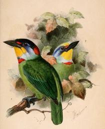 | Keywords: Megalaima faber & Megalaima nuchalis 1870.jpg <br /> « Megalaema faber » Megalaima faber Chinese Barbet « Megalaema nuchalis » Megalaima nuchalis Taiwan Barbet <br /> « Megalaema faber » Megalaima faber Barbu forgeron « Megalaema nuchalis » Megalaima nuchalis Barbu de Formose http //archive org/stream/ibis61870brit page/n611/mode/2up The Ibis ser 2 vol 6 creator John Gerrard Keulemans 1870 File Megalaima_faber_1870 jpg PD-old-100 Megalaima faber Megalaima nuchalis Ibis 1870 | ||||