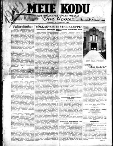 Keywords: Meie Kodu = Our Home 19 August 1949.png Coverpage of a historic newspaper from New South Wales Australia http //trove nla gov au/ndp/del/titles state New 20South 20Wales before 1955 PD-Australia Newspapers of New South Wales SLNSW media uploaded by User 99of9 |
