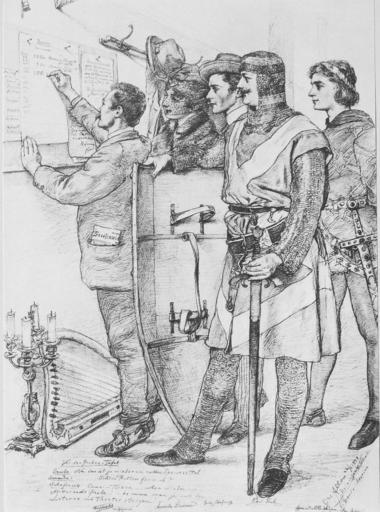 Keywords: Mein 07a Vor der Proben-Tafel.jpg en Actors at Hoftheater Meiningen Germany de Schauspieler vor der Probentafel des Hoftheater Meiningen Buch Die Meininger Creator Christian Wilhelm Allers 1890-01-22 Die Meininger Allers Amanda Lindner PD-old |