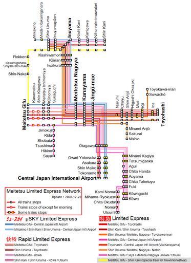 Keywords: Meitetsu Limited Express Network 2.png en Meitetsu Limited Express Network Japanese Revision of December 27 2008 ja 名鉄特 運転系統図 日 語 2008年12 27日改正 own ButuCC 2010-08-21 300px Japanese PNG Ver Revision of December 27 2008 300px English SVG Ver Revision of December 17 2011 Railway maps of Nagoya Railroad |